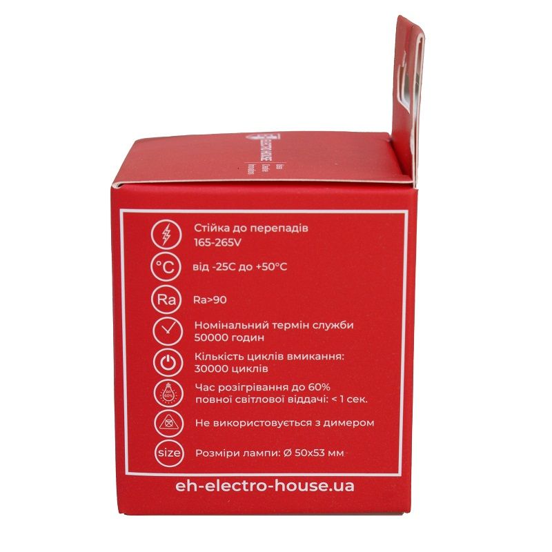 LED лампа MR16 5 Вт GU10 4100К 450 Лм 165-265 В EH-LMPT-1263 від Electro House — це інноваційне рішення для створення комфортного та енергоефективного освітлення у вашому домі чи офісі. Завдяки своїй компактній формі та високій продуктивності, ця лампа є ідеальним вибором для точкового освітлення та створення спрямованого світлового потоку.