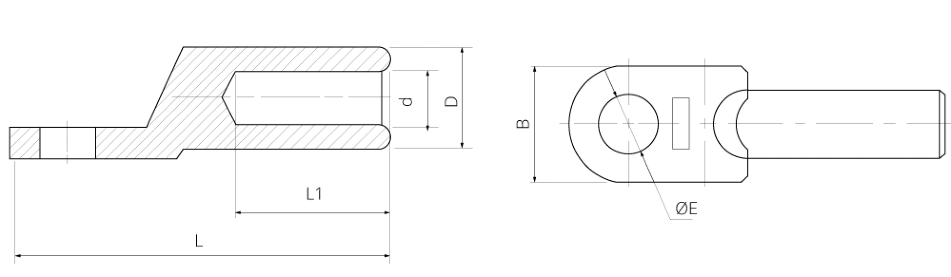 Наконечник алюмінієвий DL 70 з подовженою хвостовою частиною і максимальною товщиною стінок (стандарт 1). Призначений для окінцювання алюмінієвих проводів та кабелю. Добровільна сертифікація згідно вимог ДСТУ EN 60947-1.