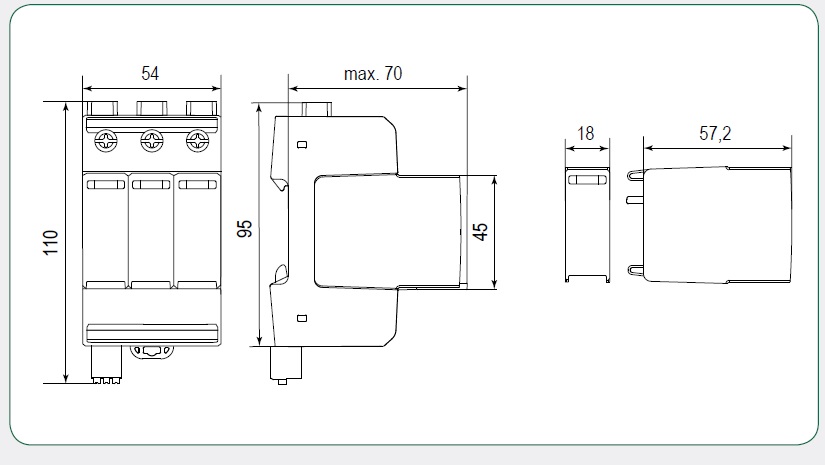 - високий рівень захисту Up <1 кВ, Ucpv 250 В DC;