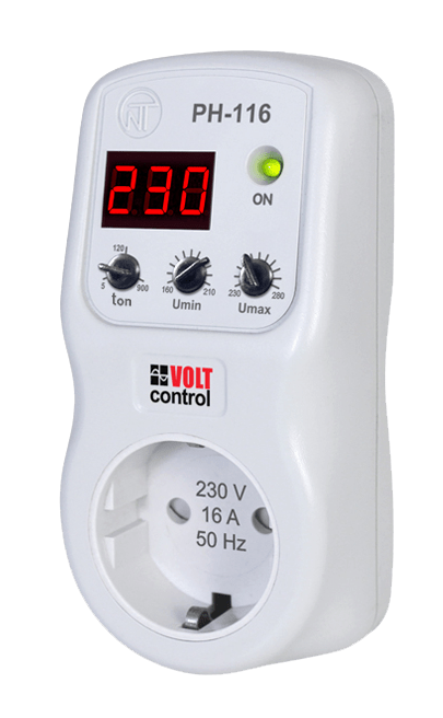 Реле напруги РН-116 “Volt Control” призначене для захисту побутової техніки (обладнання) потужністю до 3.6 кВт (холодильників, кондиціонерів, пральних машин, теле-аудіо техніки і т. ін.) від неприпустимих коливань напруги в мережі і наслідків обриву нейтралі.