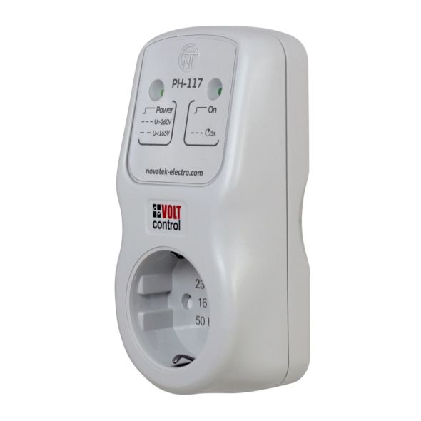 Однофазне реле напруги РН-117 ”Volt Control” призначене для захисту побутової техніки (обладнання) потужністю до 3.5 кВт (холодильників, кондиціонерів, пральних машин, теле-аудіо техніки і т .ін.) від недопустимих коливань напруги в мережі і наслідків обриву нейтралі.
