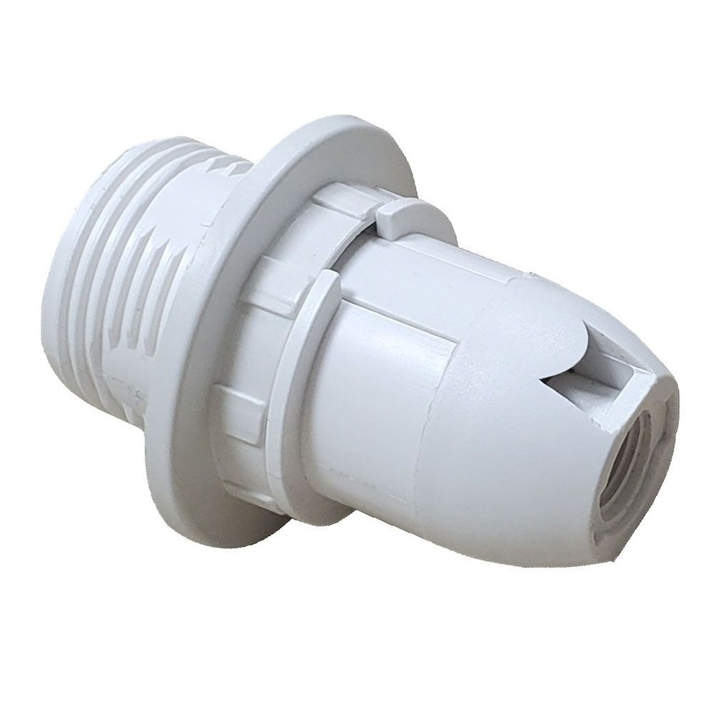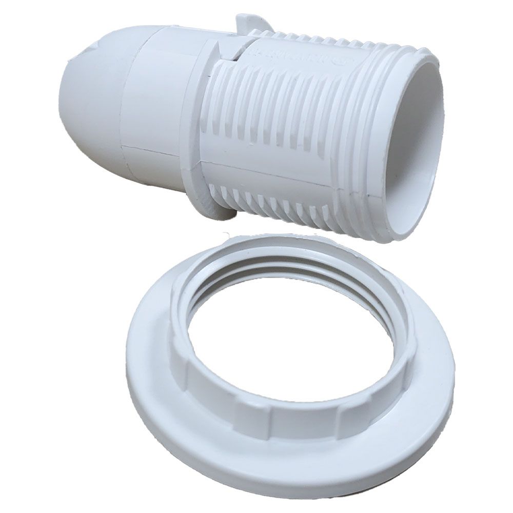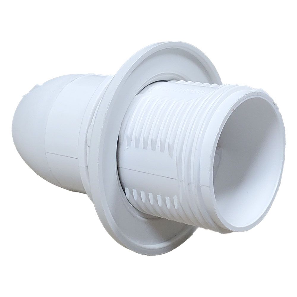 Патрон пластиковий Е14 зі стопором та з гайкою, білий