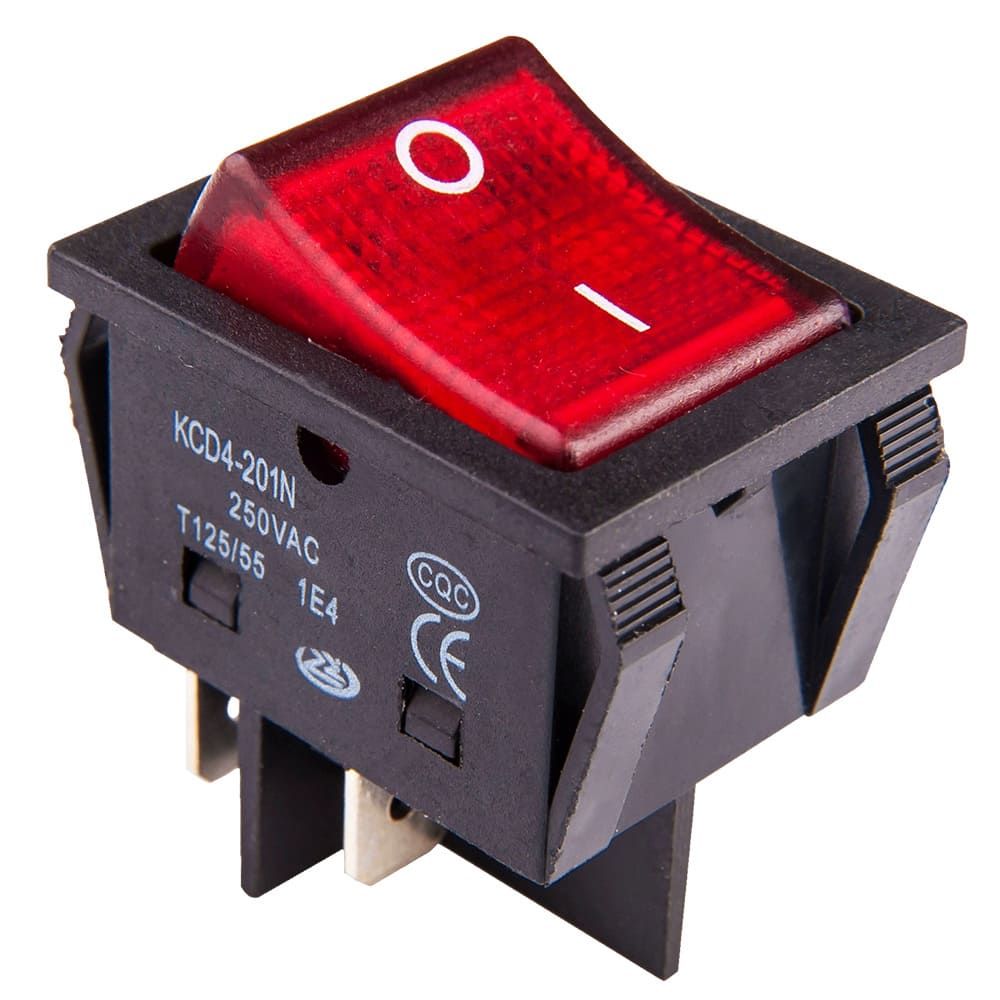 Перемикач клавішний КП-2и 220В 30А, червоний