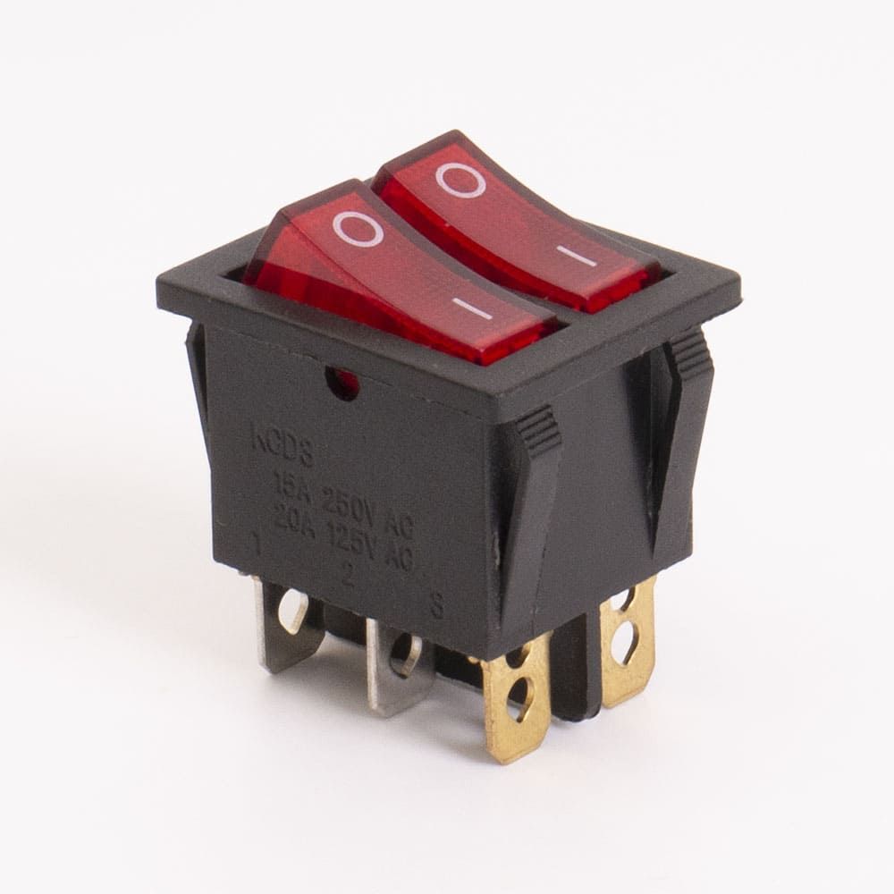 Перемикач клавішний КП-53и 220В, червоний/червоний