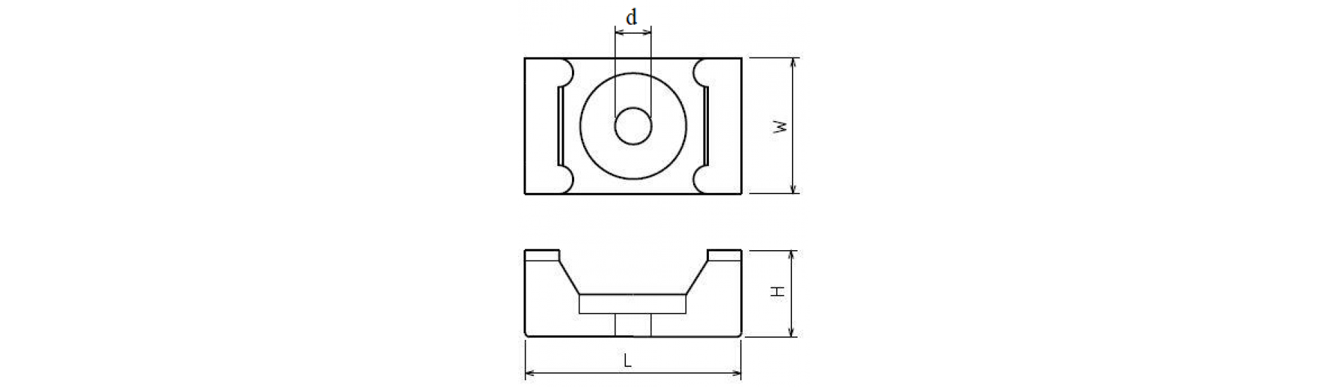 Прямокутні монтажні майданчики мають різну конструкцію, залежно від розміру. Майданчики малого та середнього розмірів мають повністю прямокутний корпус по всій висоті, а майданчики великого розміру (16х22мм) мають корпус, скошений донизу з метою економії місця на поверхні, до якої вони монтуються. Саме такі кріпильні майданчики для стяжок стали відомі під назвою «сідлоподібні майданчики».