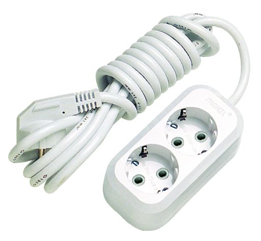 Подовжувач із з/к 2 гнізда, 2м, білий, Makel [MGP112]
