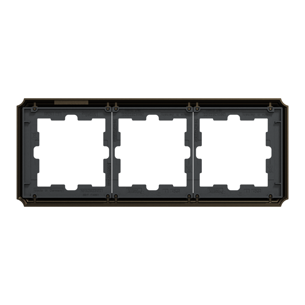 Рамка Merten System Design D-Antique MTN4030-4752, 3-постова, у кольорі мокко. Її ширина 234 мм, висота 90 мм, глибина 12 мм. Ступінь захисту IP20. Виготовлена зі сплаву металів Zamak. Рамка не містить SVHC (особливо небезпечних речовин). Рамка не містить ртуті та галогенів, що безпечно для вас та навколишнього середовища. Merten System Design — це серія сучасних електроустановчих виробів, яка має широкий асортимент механізмів (вимикачі, розетки, димери, USB розетки та розетки RJ45 і тд), яка втілює аристократичну елегантність та розкішну ексклюзивність.