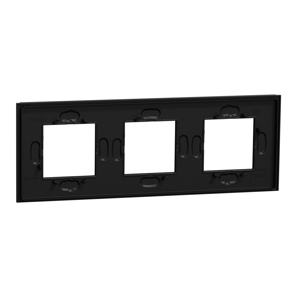 Рамка Schneider Electric Unica Deco надає інтер'єру естетичного вигляду. Рамки з 8-ми точковим кріпленням, ідеально вирівнюються відповідно до стіни. Елегантний стиль натхненний Баугаузом, що гармонійно поєднанує в собі функцію та дизайн. Рамка трипостова, горизонтальна. Спосіб кріплення: затискний. Виріб екологічно чистий, стійкий до ультрафіолету, ацетону, спирту, аміаку, відбілювача, рідкого мила, олії, бензину та рідини для миття вікон. Рамка виконана в трендовому дизайні і може бути гармонійно та легко встановлена в інтер'єр. Виріб не містить галогенів. Розміри: (Ш) 92 мм x (В) 85 мм x (Г) 10,25 мм. Вага: 40 г. Колір: чорний. Виготовлена із замаку з приємним гумовим покриттям, м'яким на дотик. Ступінь захисту: IP21D. Ступінь ударозахисту: IK04. Unica New розроблена з розумними функціями, забезпечуючи універсальність, легкість сприйняття та швидкість у встановленні. Забезпечуючи повний обсяг рішень для клієнта. Користувачі отримують прекрасний дизайн та інноваційний підхід до вирішення проблем. Unica New має різноманітні сучасні функції, що дозволяють використовувати її в розумних будинках майбутнього. Вона повністю відповідає стандартам Мек 60669-1, Мек 60884-1.