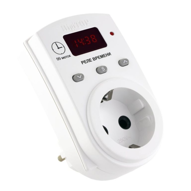 Реле часу РВ-1С призначене для автоматичного включення і відключення виконавчих пристроїв в задані користувачем моменти астрономічного (реального) часу. Реле часу має добовий цикл роботи. Користувач може встановити до 99 міток (вмикання або вимикання) на добу. Встановлений цикл повторюється всі наступні тижні. Налаштування будуть збережені, навіть в разі відключення електроенергії. Легкість і простота підключення пристрою, щоб підключити прилад, достатньо включити його в розетку. Негорючий, зносостійкий і ударостійкий корпус найкращим чином забезпечує надійний захист пристрою і безпеку його експлуатації.