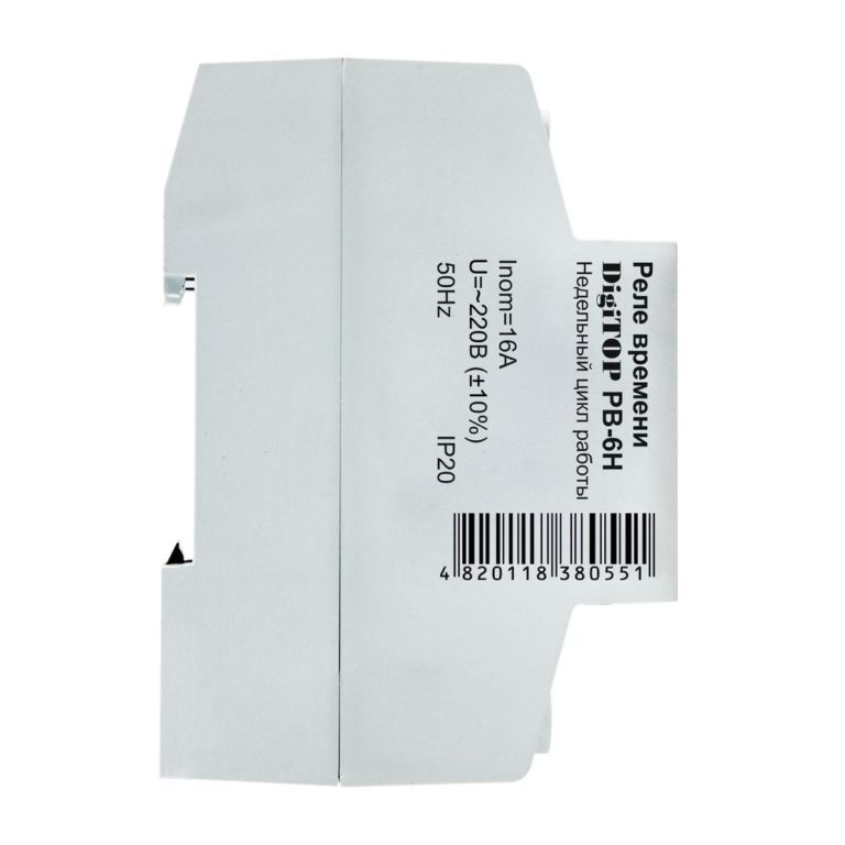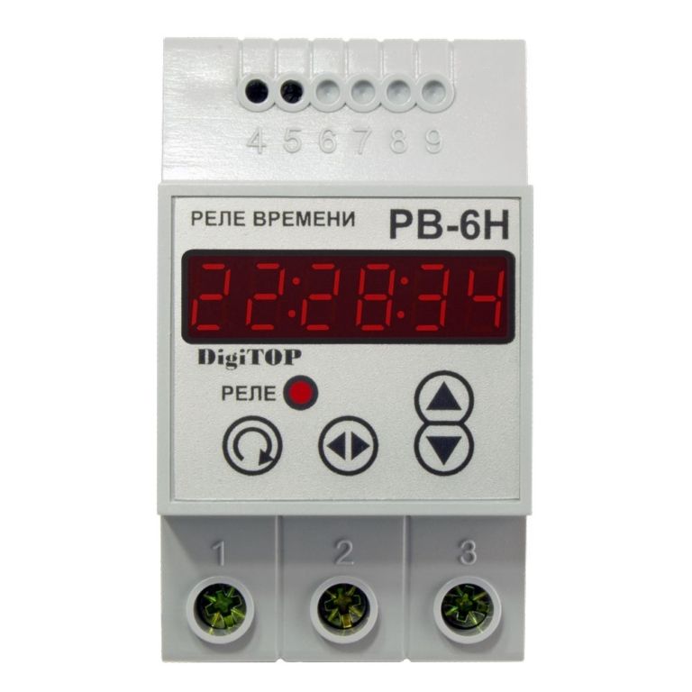 Реле часу РВ-6Н призначене для автоматичного включення і відключення виконавчих пристроїв (системи поливу, освітлення і т.д.) в задані користувачем моменти астрономічного (реального) часу. Реле часу має тижневий цикл роботи. Користувач може встановити до 16 міток (вмикання або вимикання) на кожен день тижня. Встановлений цикл повторюється всі наступні тижні. Налаштування будуть збережені, навіть в разі відключення електроенергії. Негорючий, зносостійкий і ударостійкий корпус найкращим чином забезпечує надійний захист пристрою і безпеку його експлуатації.
