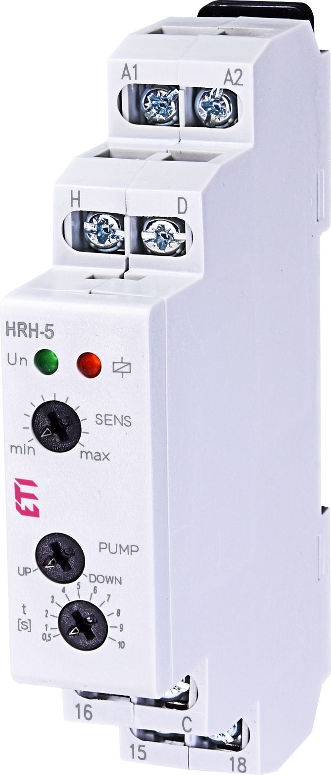 Реле контролю рівня рідини HRH-5 UNI 24-240 В використовується для контролю одного або двох рівнів рідини в одному резервуарі. Реле призначене для контролю рівня електропровідних рідин з можливістю вибору функції накачування або відкачування (PUMP UP або PUMP DOWN). Для перешкоди поляризації рідини та окислення датчиків використовується змінний струм.
