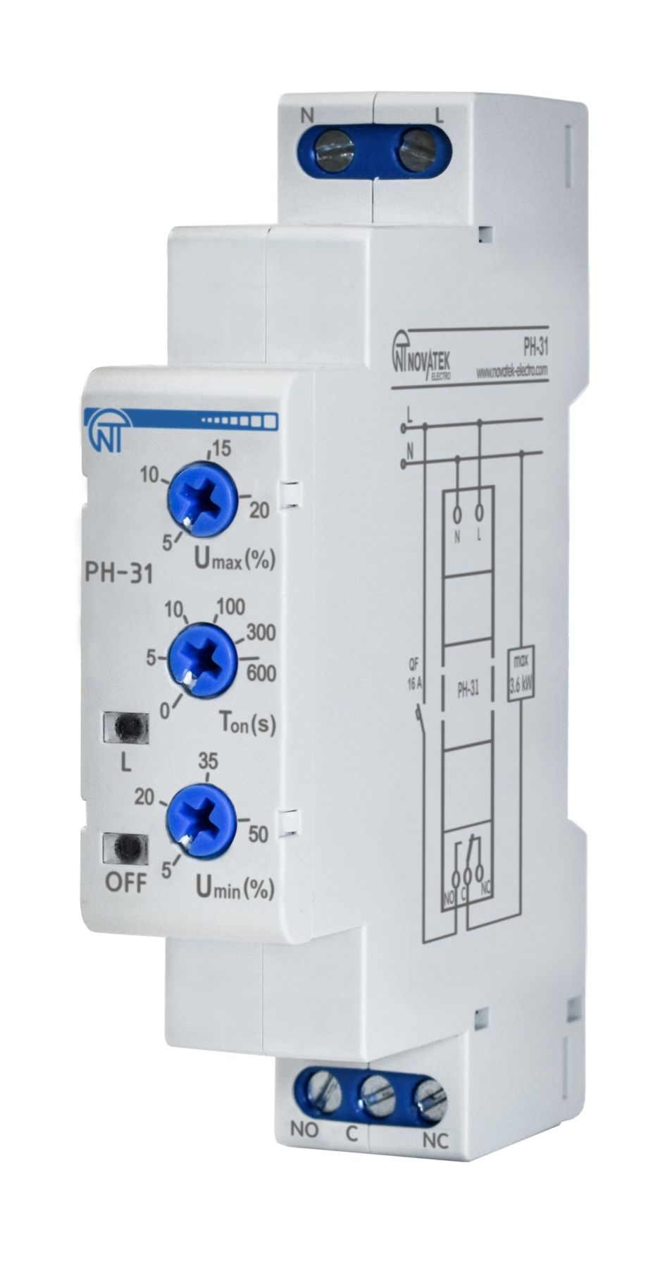 Реле напруги PH-31 для домашнього та промислового використання, пристрій призначений для захисту однофазних споживачів від аварійних значень напруги в електромережі. В побуті забезпечує захист, як усього дому, так і окремих пристроїв, холодильник, кондиціонер, нагрівач, комп'ютер і т.д. В промисловості забезпечує захист у складі щита управління та комутації; як складова частина агрегату, промисловий холодильник, станок та інше.