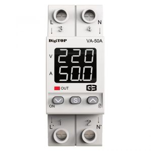 Реле напруги з контролем струму VA-50A M2W DigiTOP- це реле напруги з термозахистом у компактному корпусі. Займає всього 2 модулі на DIN-рейці та економить 33% простору в електрощитку. Третє покоління реле напруги від DigiTOP.