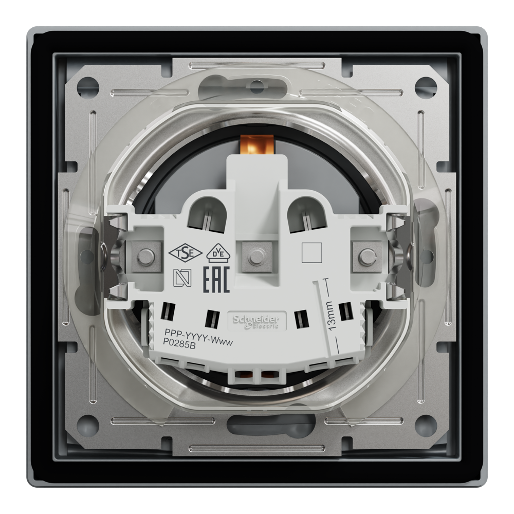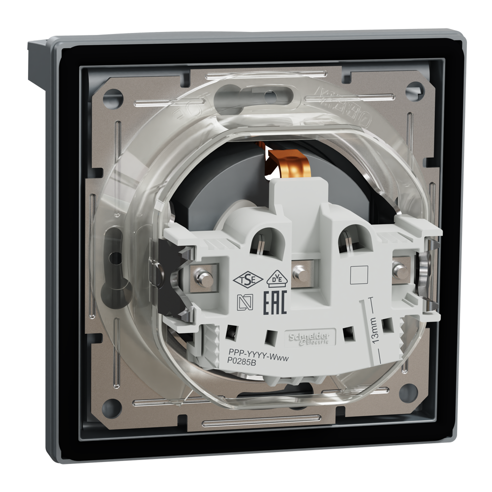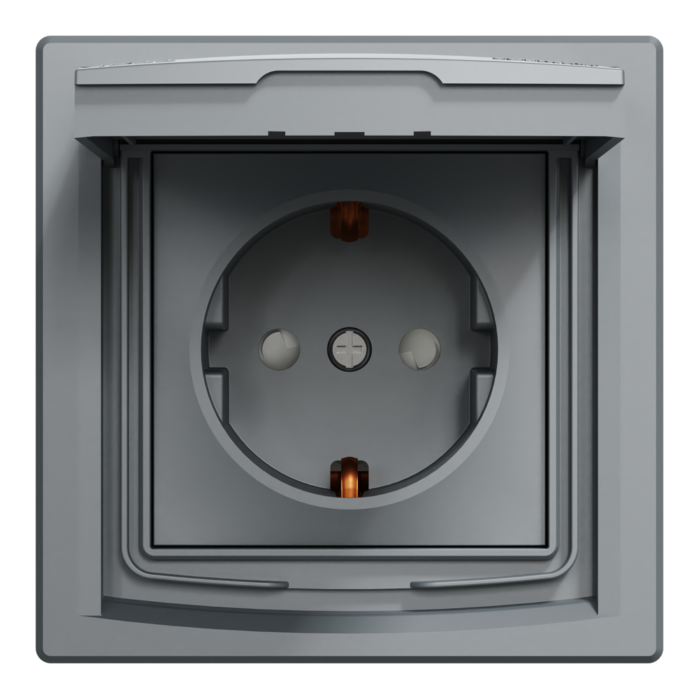 Розетка IP44 з кришкою, з заземленням, з захисними шторками, сталь Asfora, Schneider Electric [EPH3100362]