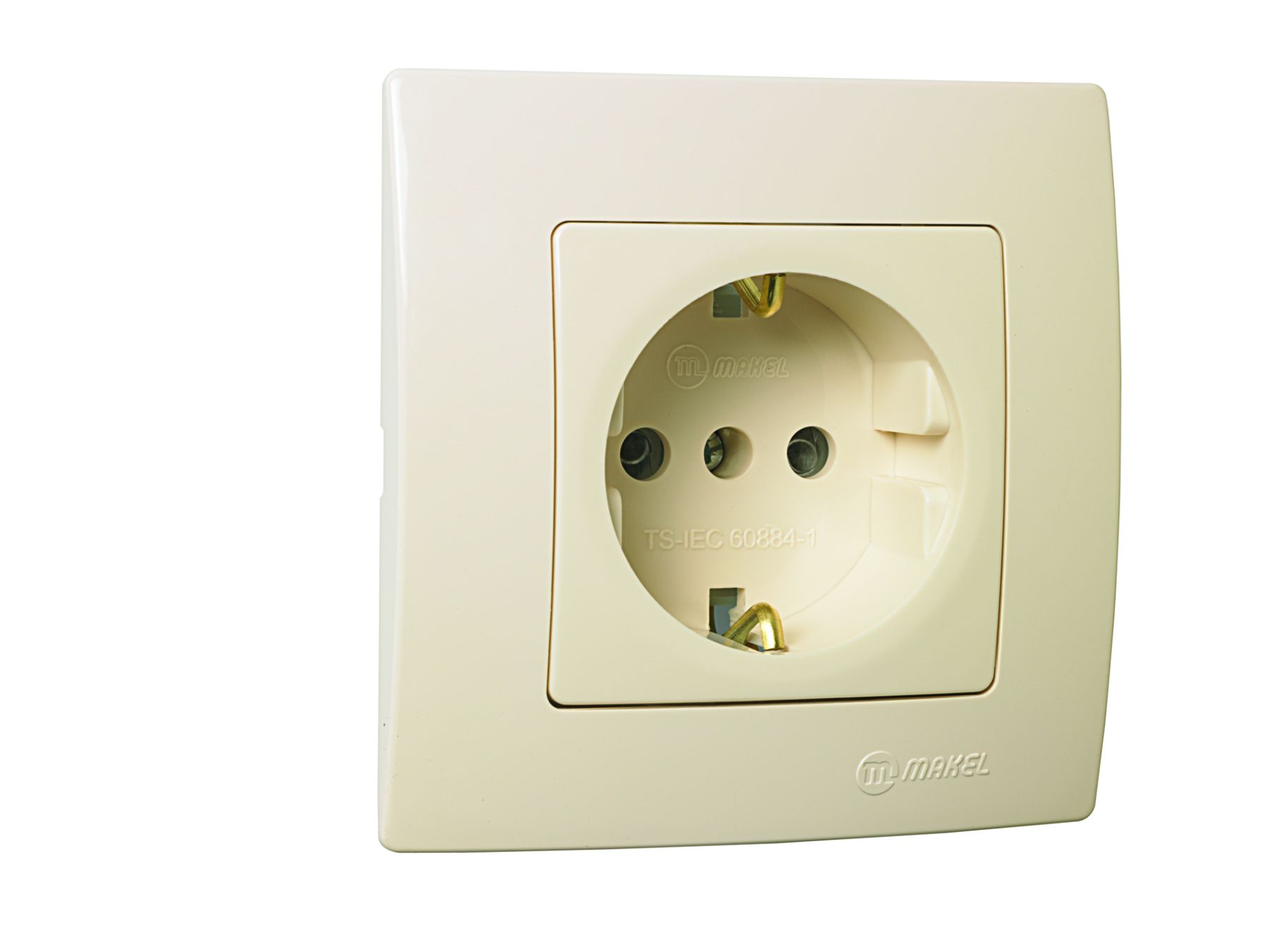 Розетка внутрішнього монтажу естетично виглядає за рахунок прихованої проводки. Вона майже не виступає зі стіни. Розетка має заземлюючий контакт, що забезпечує безпеку у використанні та запобігає можливим пошкодженням від статичної електрики.