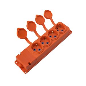 Розетка каучукова чотиримісна стаціонарна 4KMP-O 2Р+РЕ, 16А, IP44, помаранчева, Bylion [403369]