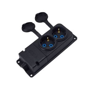 Розетка каучукова двомісна стаціонарна 2KMP 2Р+РЕ, 16А, IP44, чорна, Bylion [403357]