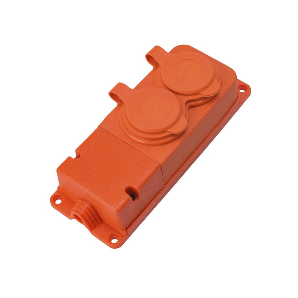 Розетка каучукова двомісна стаціонарна 2KMP-O 2Р+РЕ, 16А, IP44, помаранчева, Bylion [403367]