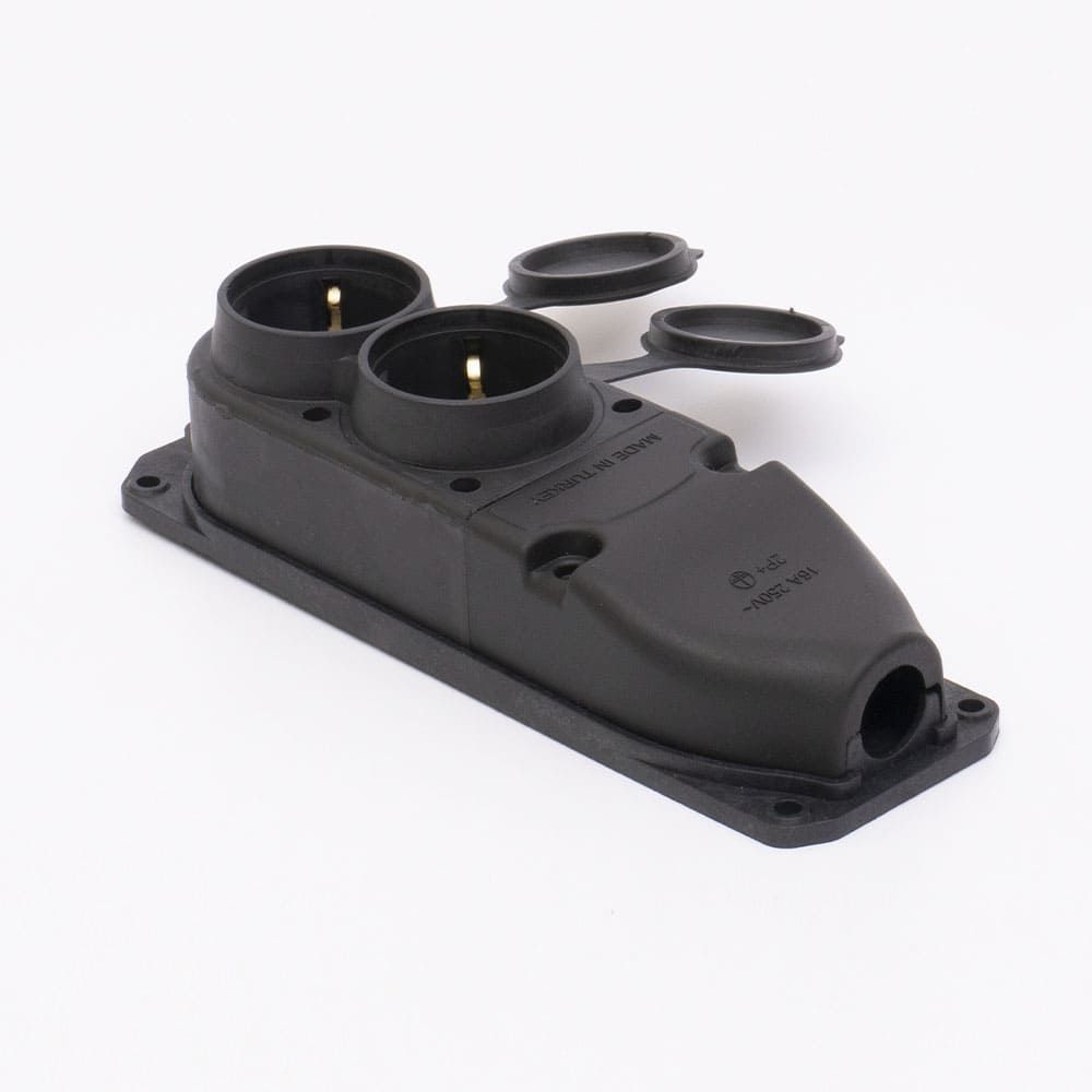 Розетка каучукова двомісна з захисними кришками 402 2Р+РЕ IP44