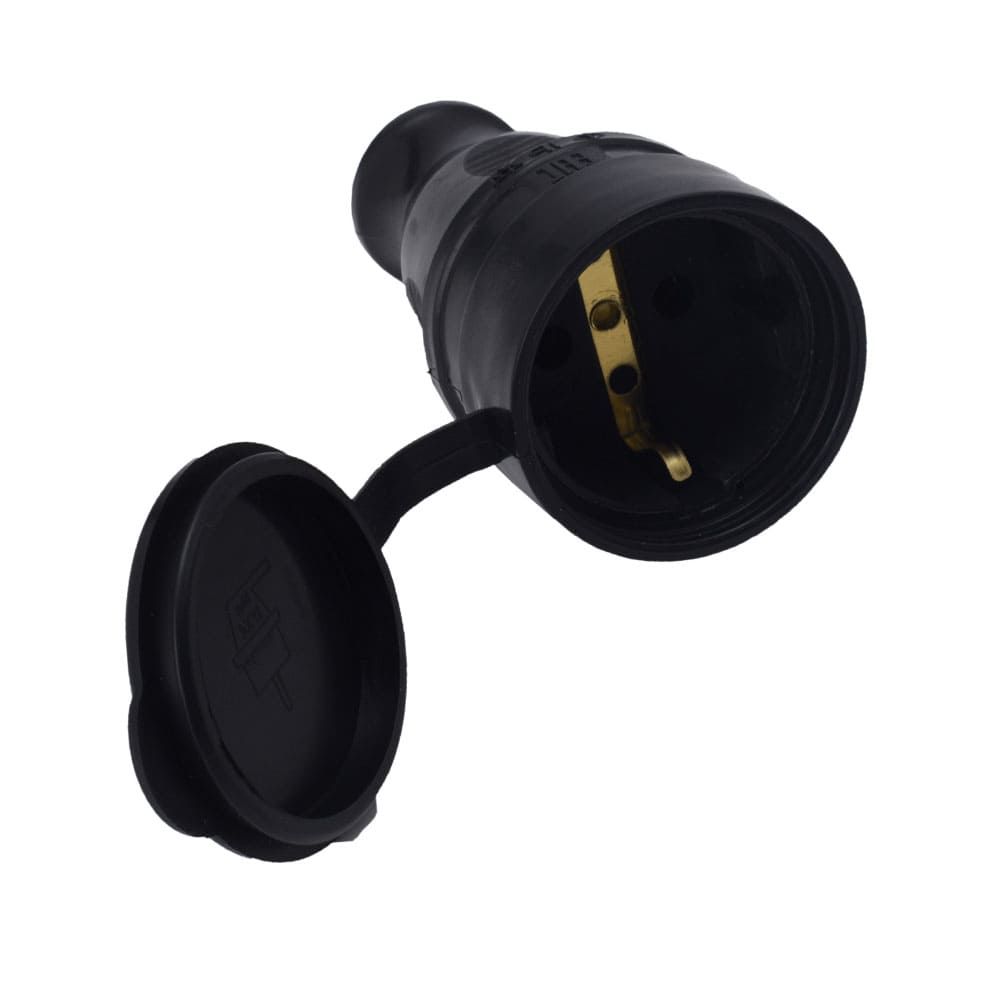 Розетка каучукова переносна KDP 2Р+РЕ, 16А, IP44, чорна, Bylion [403354]