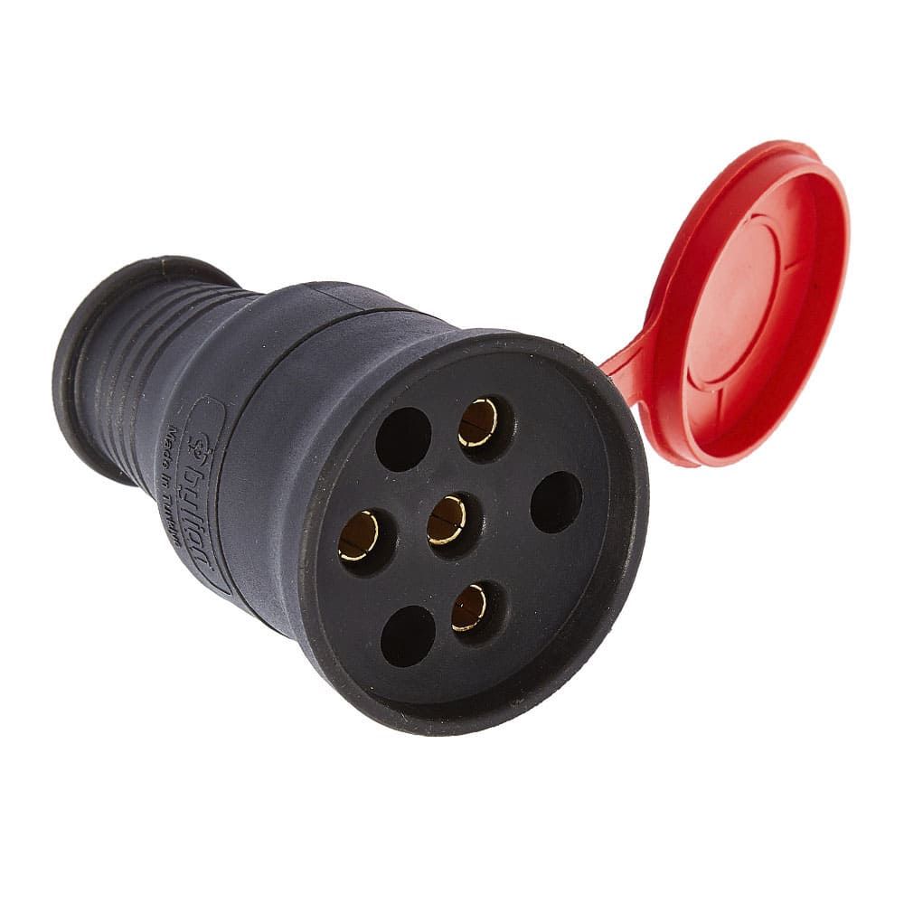 Розетка каучукова переносна KDPT 3Р+РЕ 25А, IP44 - це чотириполюсна розетка з номінальною напругою 380 - 415В та з номінальним струмом 25А.