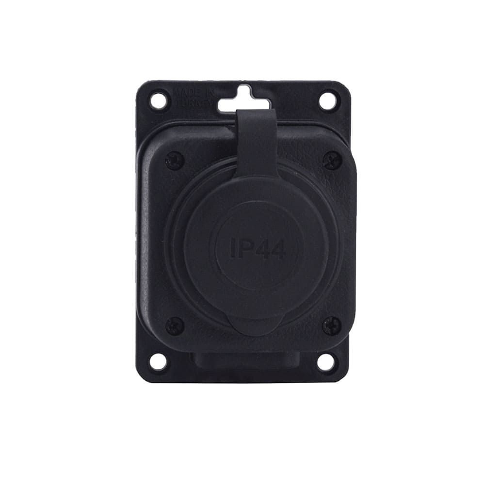 Розетка каучукова стаціонарна 1KMP 2Р+РЕ, 16А, IP44, чорна, Bylion [403356]