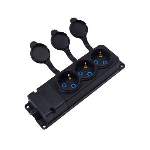 Розетка каучукова тримісна стаціонарна 3KMP 2Р+РЕ, 16А, IP44, чорна, Bylion [403358]