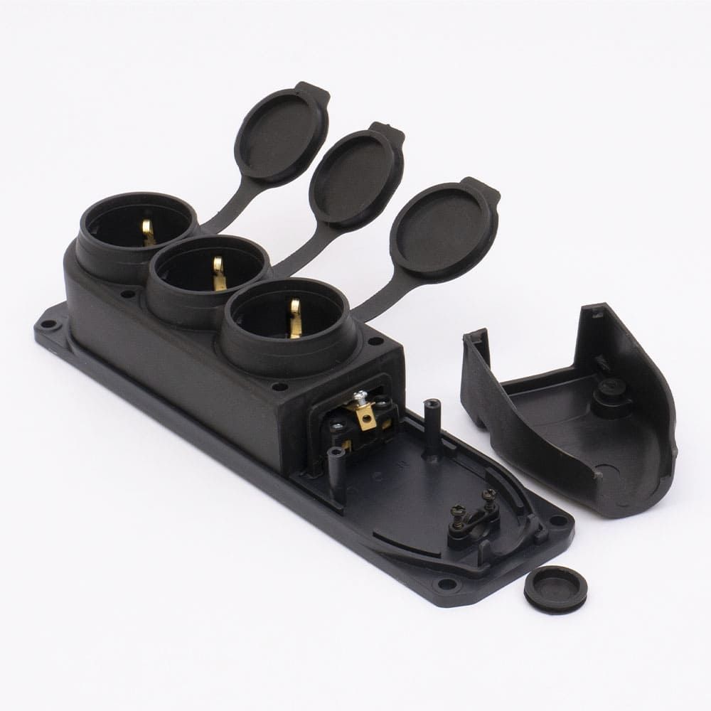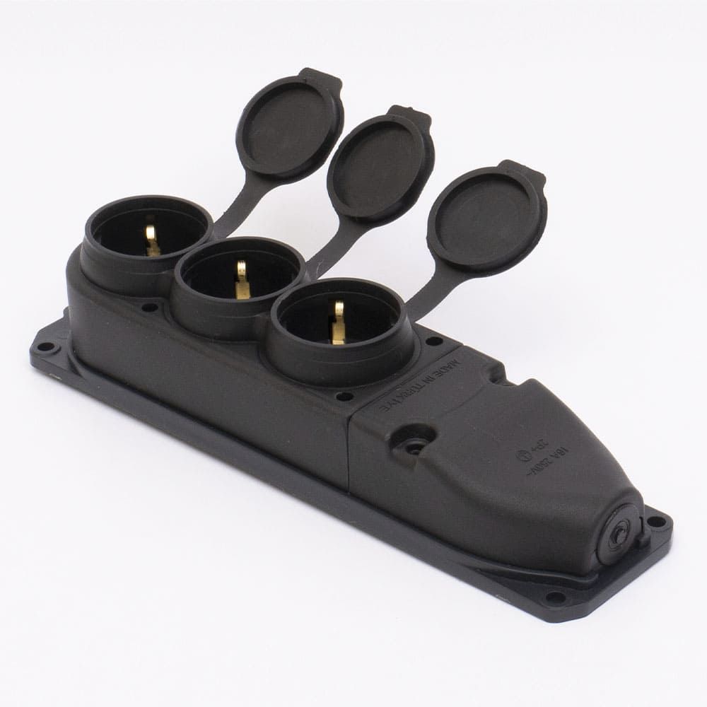 Розетка каучукова тримісна з захисними кришками 403 2Р+РЕ IP44