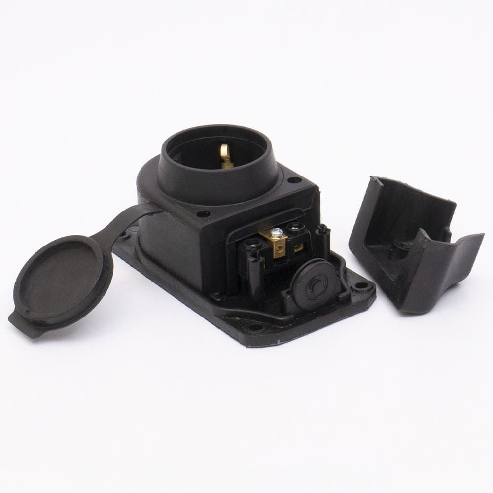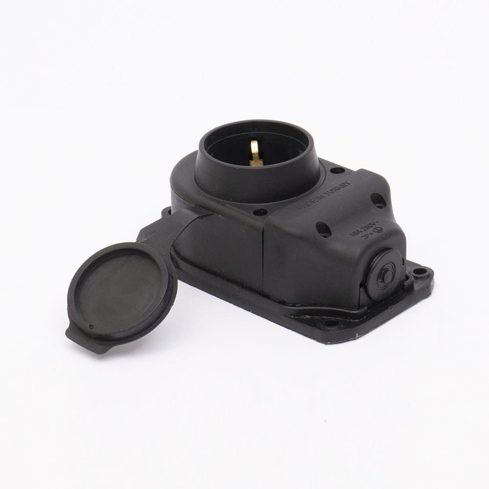 Каучукова розетка призначена для використання у звичайних, а також у складних експлуатаційних умовах та інших несприятливих середовищах. Виконує роль колодок подовжувачів або стаціонарних роз'ємів. А також розетка має кришку, яка надійно закриває гніздо, захищаючи його від пилу, бруду і випадкового дотику.
