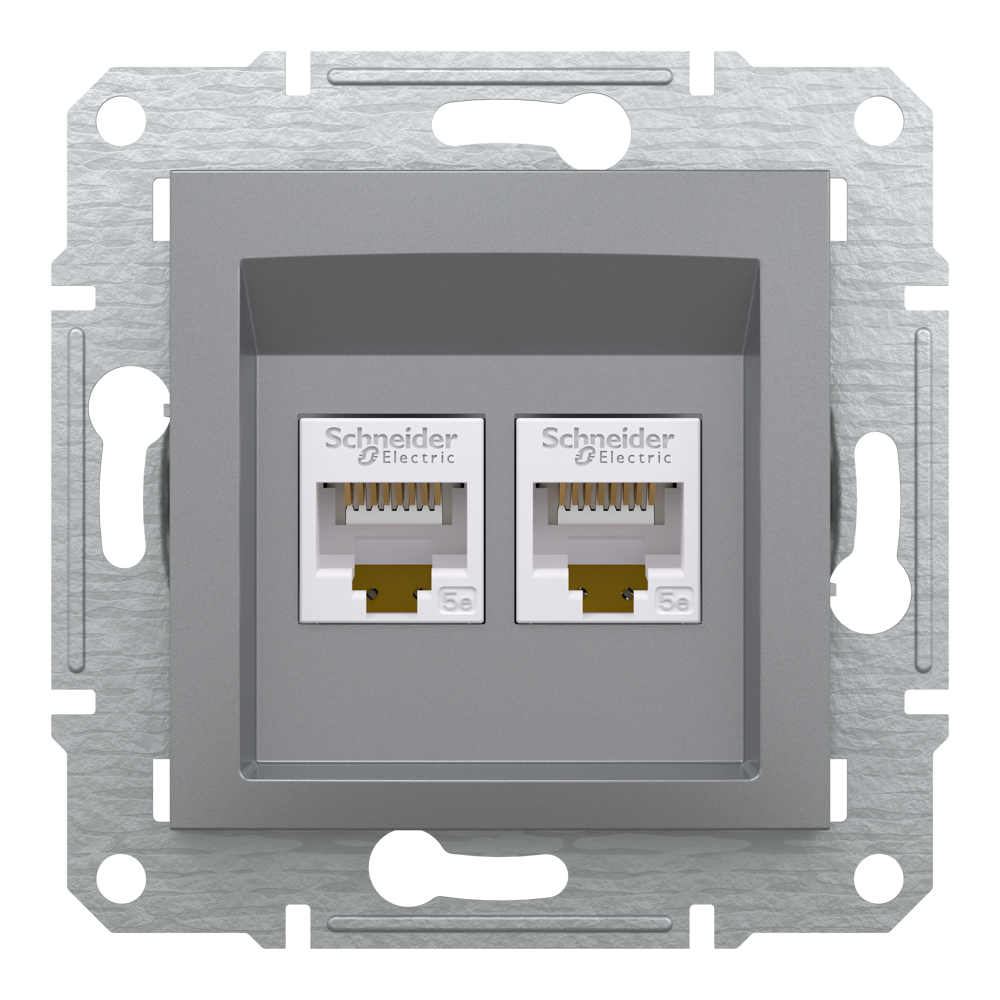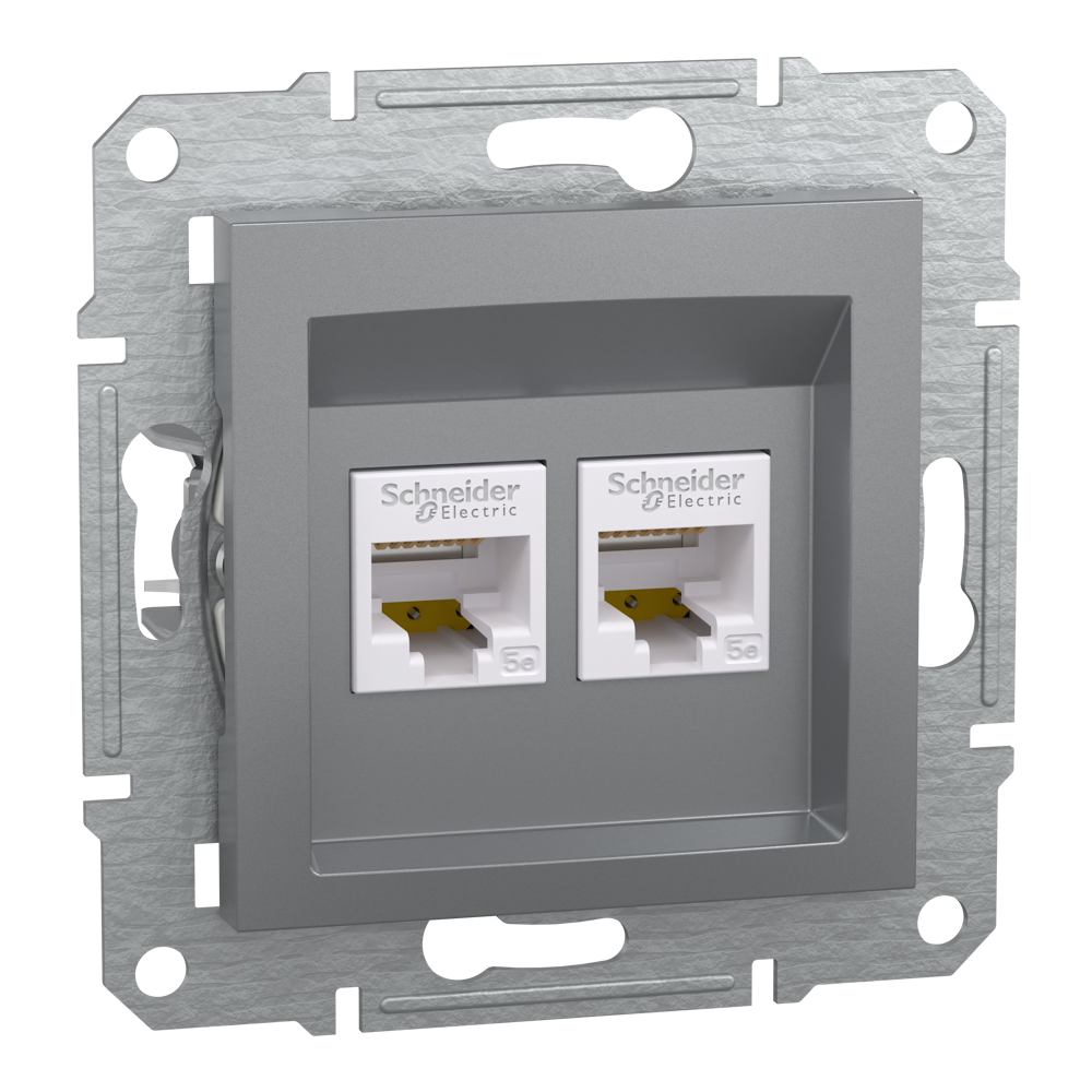 Розетка RJ45, тип UTP, кат. 5е подвійна Asfora сталь, Schneider Electric [EPH4400162]