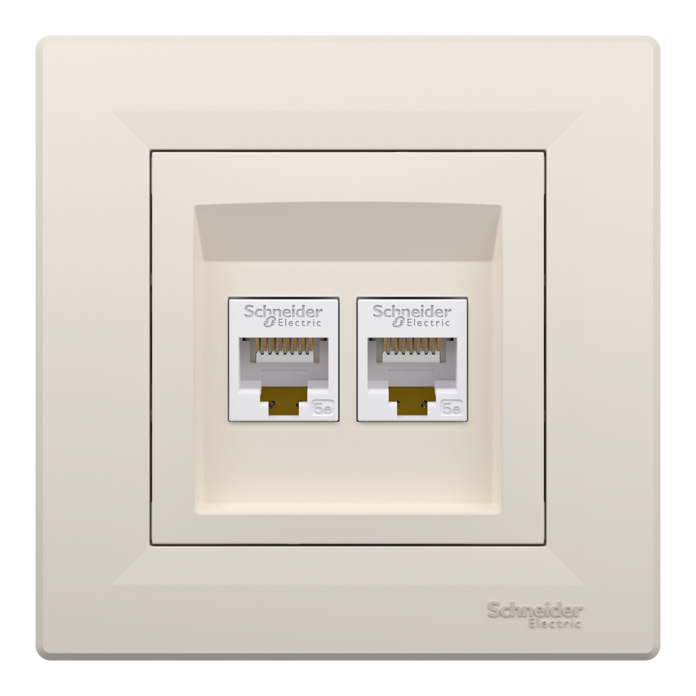 Розетка RJ45, тип UTP, utp кат. 5е подвійна крем Asfora, Schneider Electric [EPH4400123]