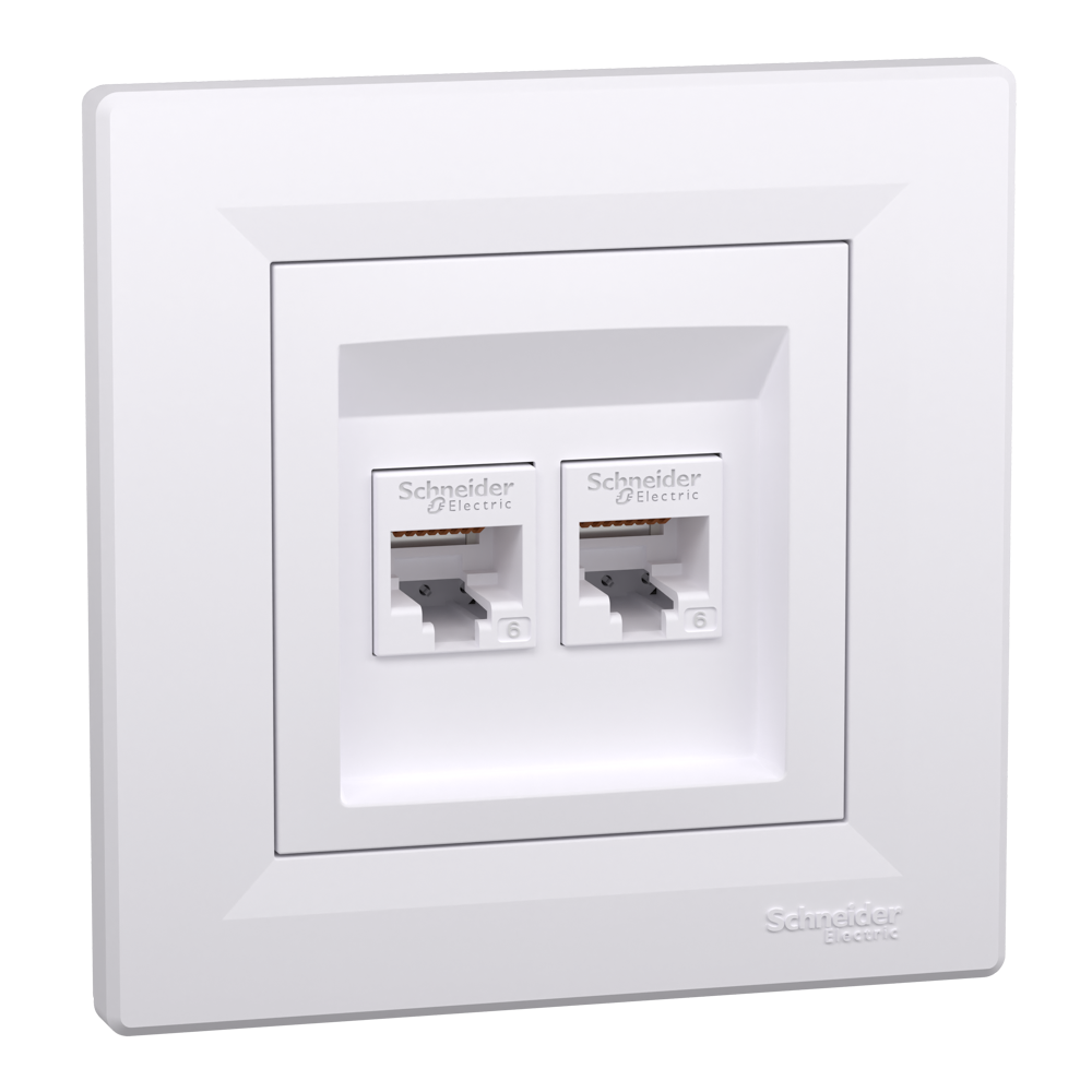 Розетка RJ45, тип UTP, кат.6 подвійна біла Asfora, Schneider Electric [EPH4800121]