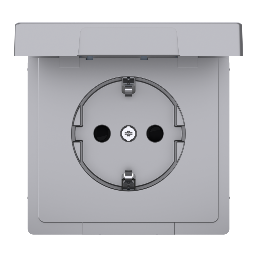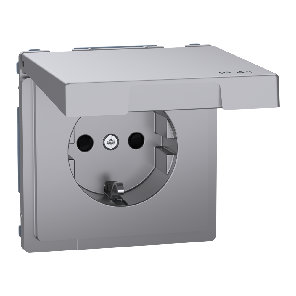 Розетка, Merten, D-Life РОЗ. з/к і криш. IP44 НЕРЖ.СТАЛЬ, нержавіюча сталь, Schneider Electric, [MTN2314-6036]