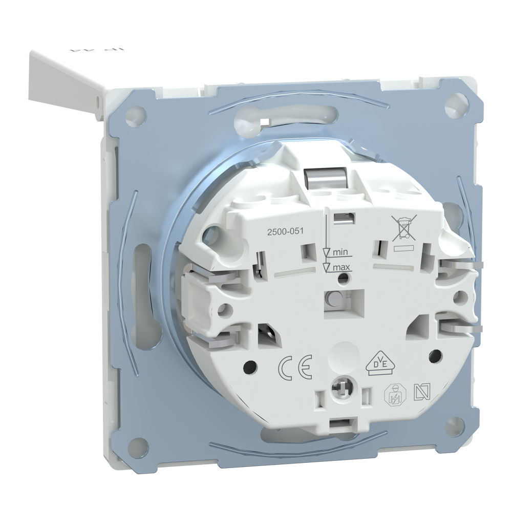 Розетка Schneider Electric Merten System Design MTN2314-6035 кольору білий лотос з заземленням. Клеми підключення розетки - безгвинтові. Розетка виготовлена по стандрту Шуко. Номінальний струм 16 А. Тип монтажу - прихований. Тип кріплення - гвинти та монтажні лапки. Розетка виготовленя з матеріалу PC + ASA. Розетка належить до групи System Design. Більше того, вона відповідає стандарту DIN 49440. Її ширина 71 мм, висота 45 мм і довжина 71 мм. Конфігурація полюсів розетки 2P + E зі шторками, що захищає дітей від можливого ураження електричним струмом. Ступінь захисту IP44.
