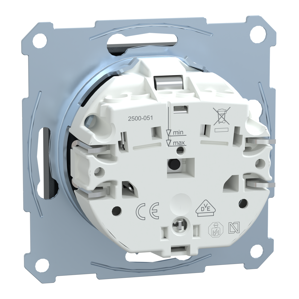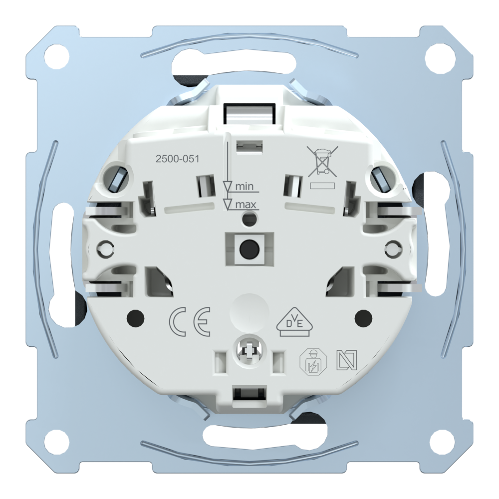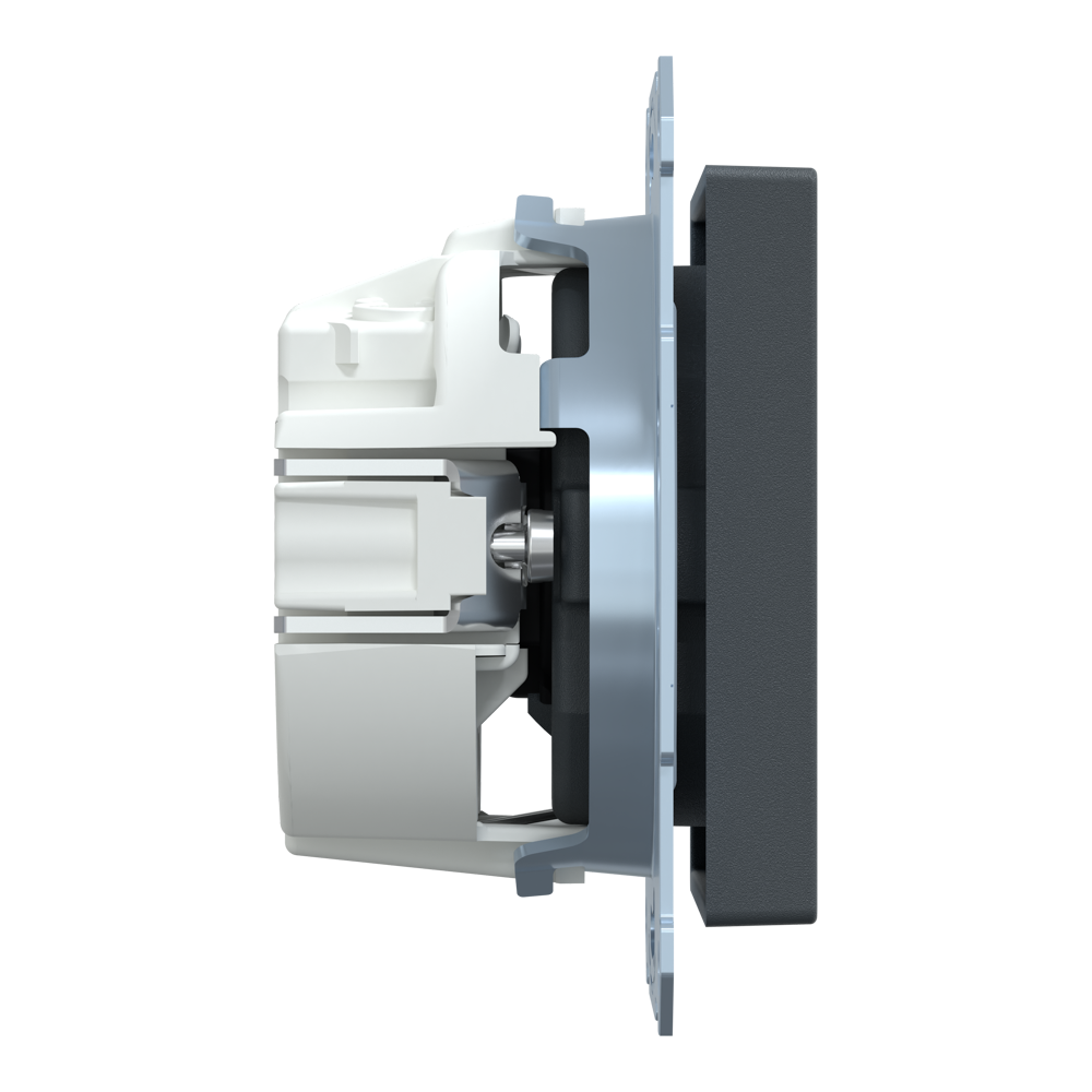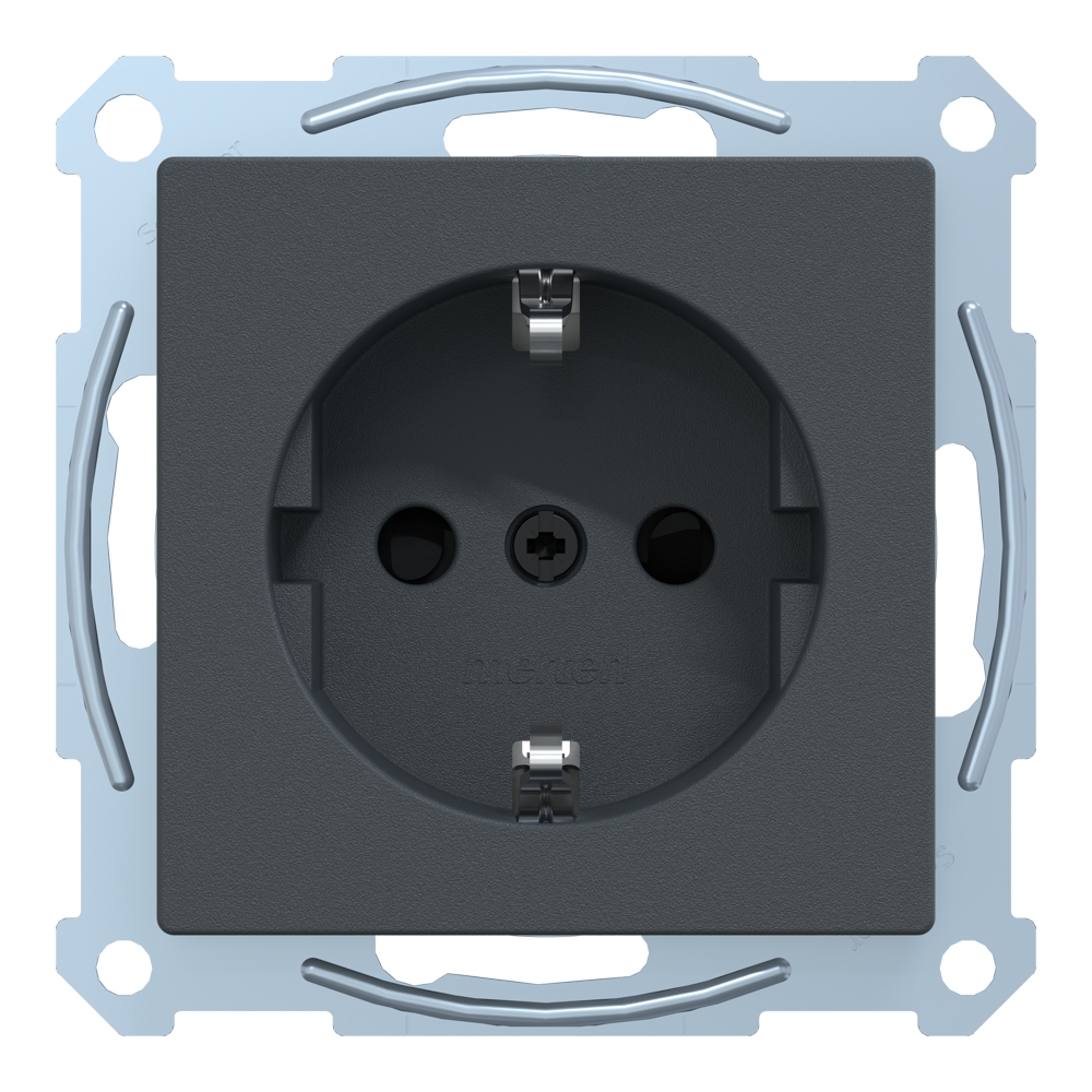 Ключові особливості: серія Merten, розетка, колір чорний (ral 7024), матеріал термопластик, габарити 71 мм × 71 мм × 4 мм.