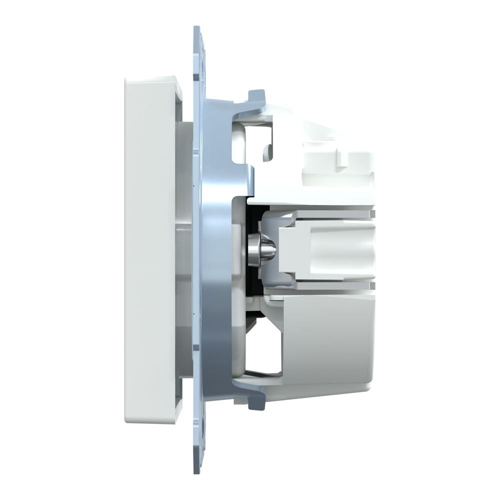 Ключові особливості: серія Merten, розетка, колір білий (ral 9016), матеріал термопластик, габарити 71 мм × 71 мм × 4 мм.