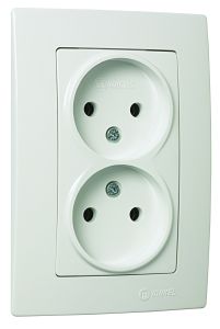 Розетка оснащена двома гніздами, що дозволяє підключати до електромережі різні електроприлади. Розетка внутрішнього монтажу естетично виглядає за рахунок прихованої проводки. Вона майже не виступає зі стіни.