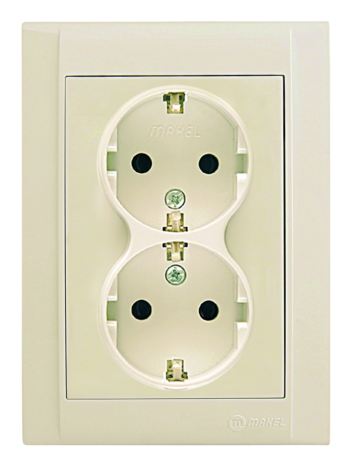Подвійна розетка Makel Defne – це кремова розетка для внутрішнього монтажу. Вона призначена для електричних мереж із номінальним струмом 16А.