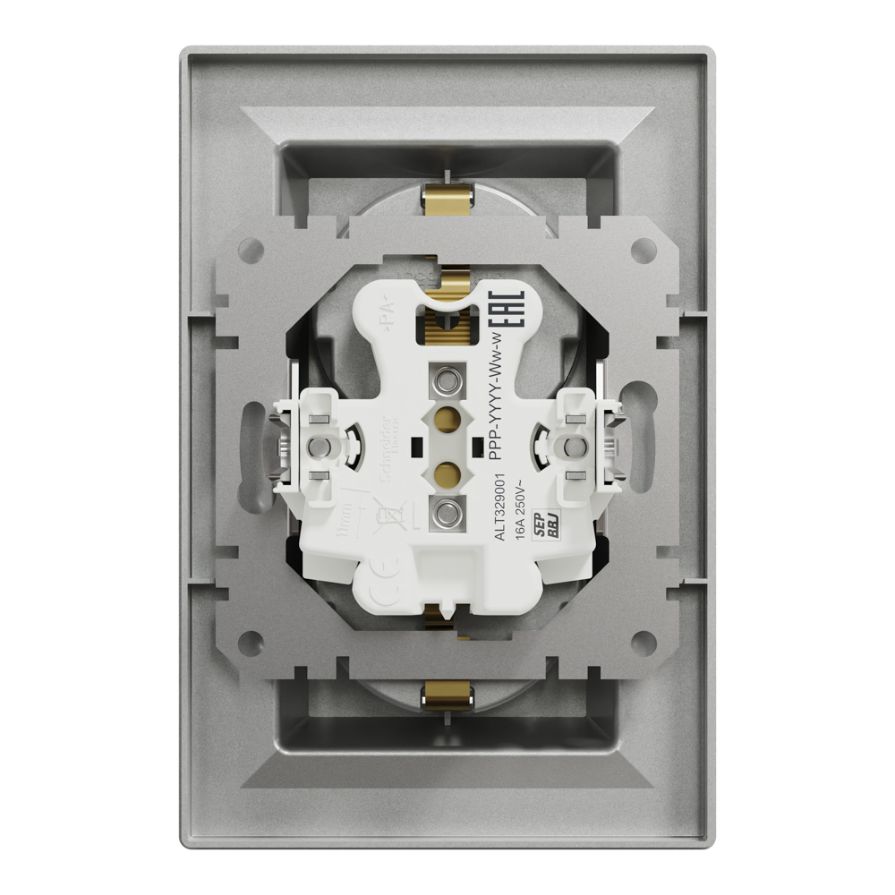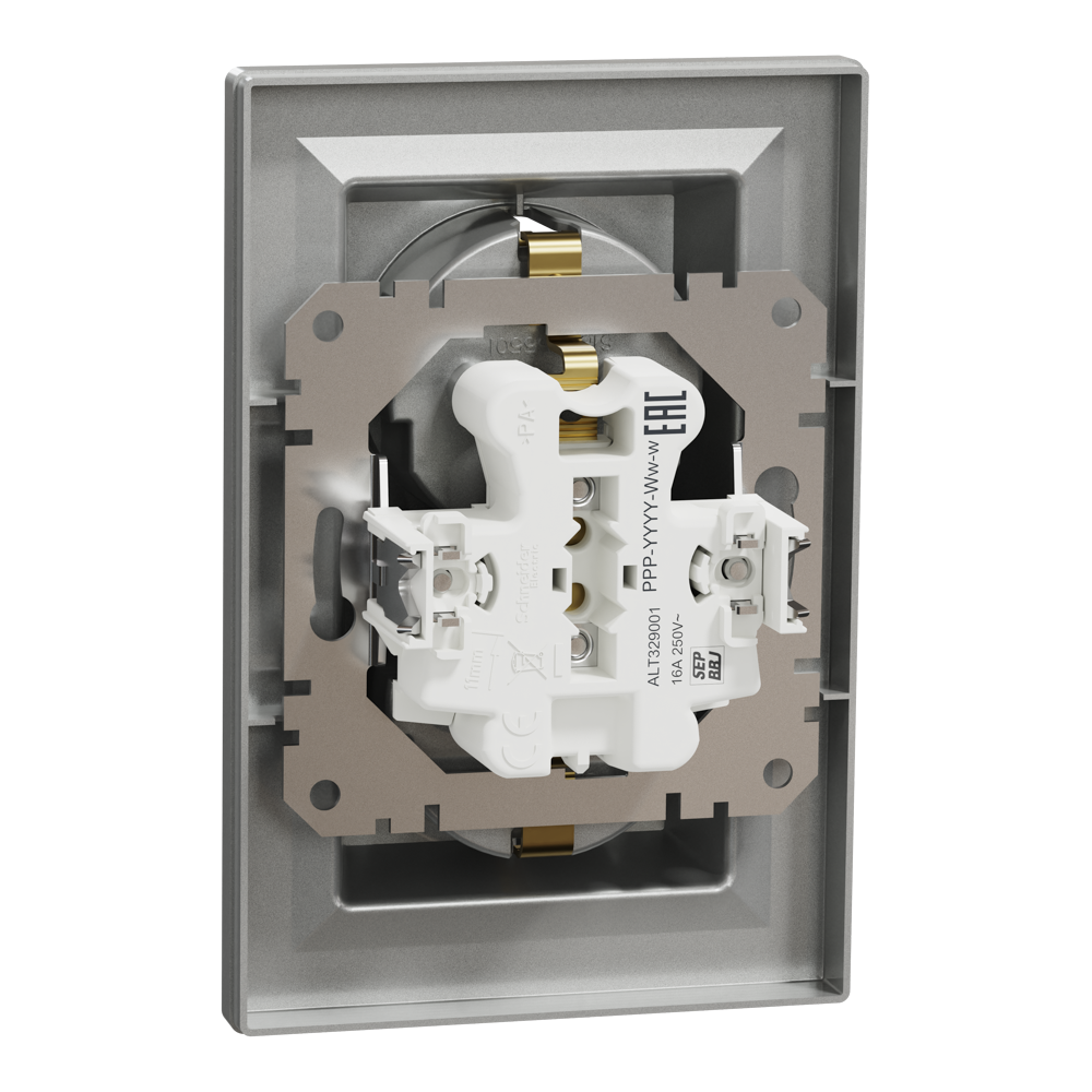 Ключові особливості: серії Asfora, Розетка, колір алюмінієвий | алюмінієвий, матеріал abs (акрилонітрил-бутадієн-стирол): покриття рамки | asa + pc: центральна плита, поставляється у пакуванні флоу-пак.