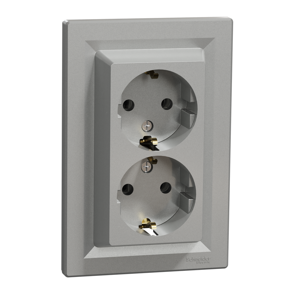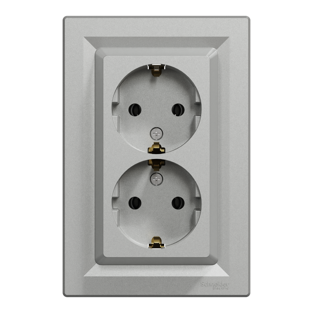 Розетка подвійна з заземленням алюміній Asfora, Schneider Electric [EPH9900161]