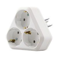 Розетка оснащена трьома гніздами, що дозволяє підключати до електромережі різні електроприлади одночасно.