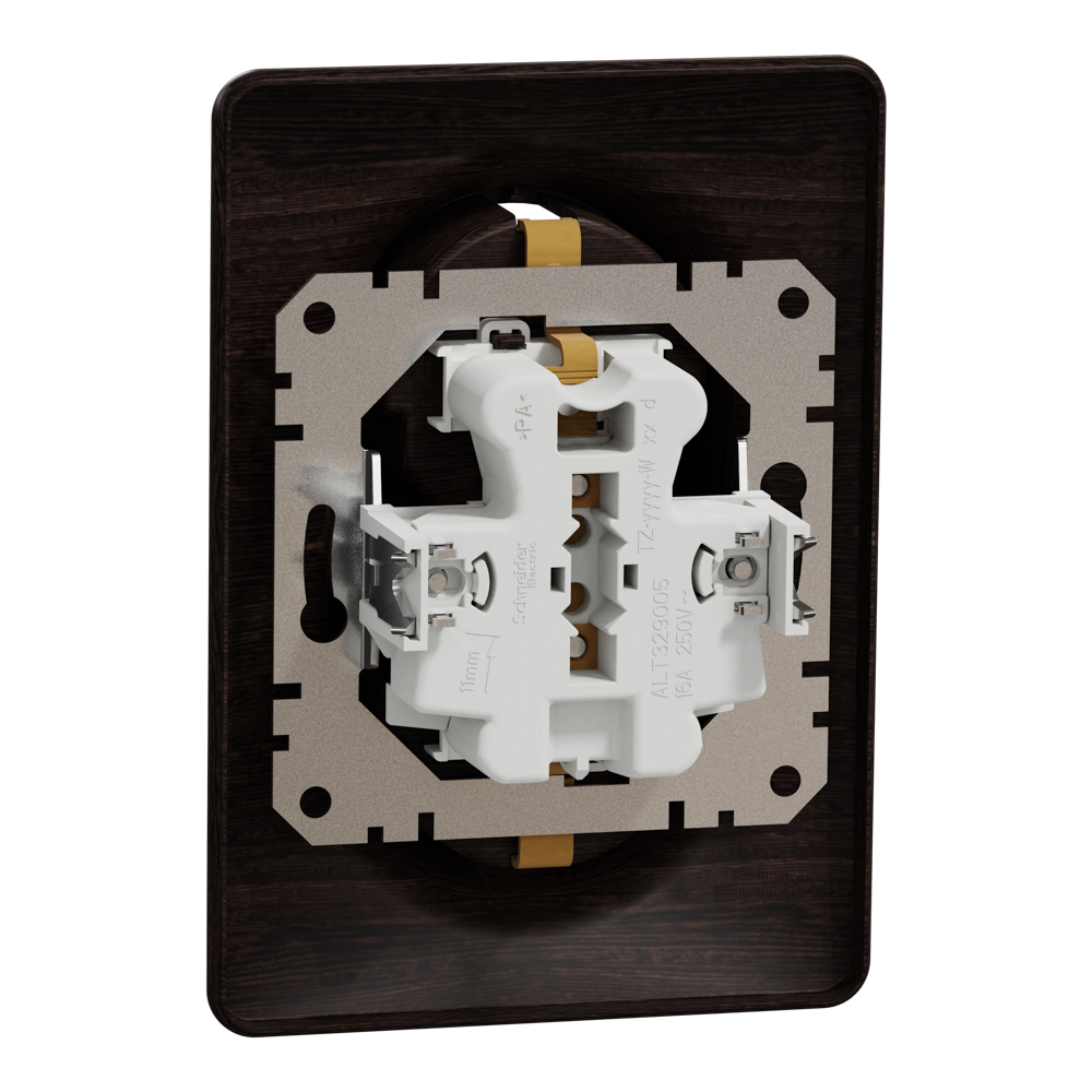 Розетка, Sedna Design&Elements, Подвійна розетка з заземленням та шторками, колір дерева венге, Schneider Electric, [SDD381221]
