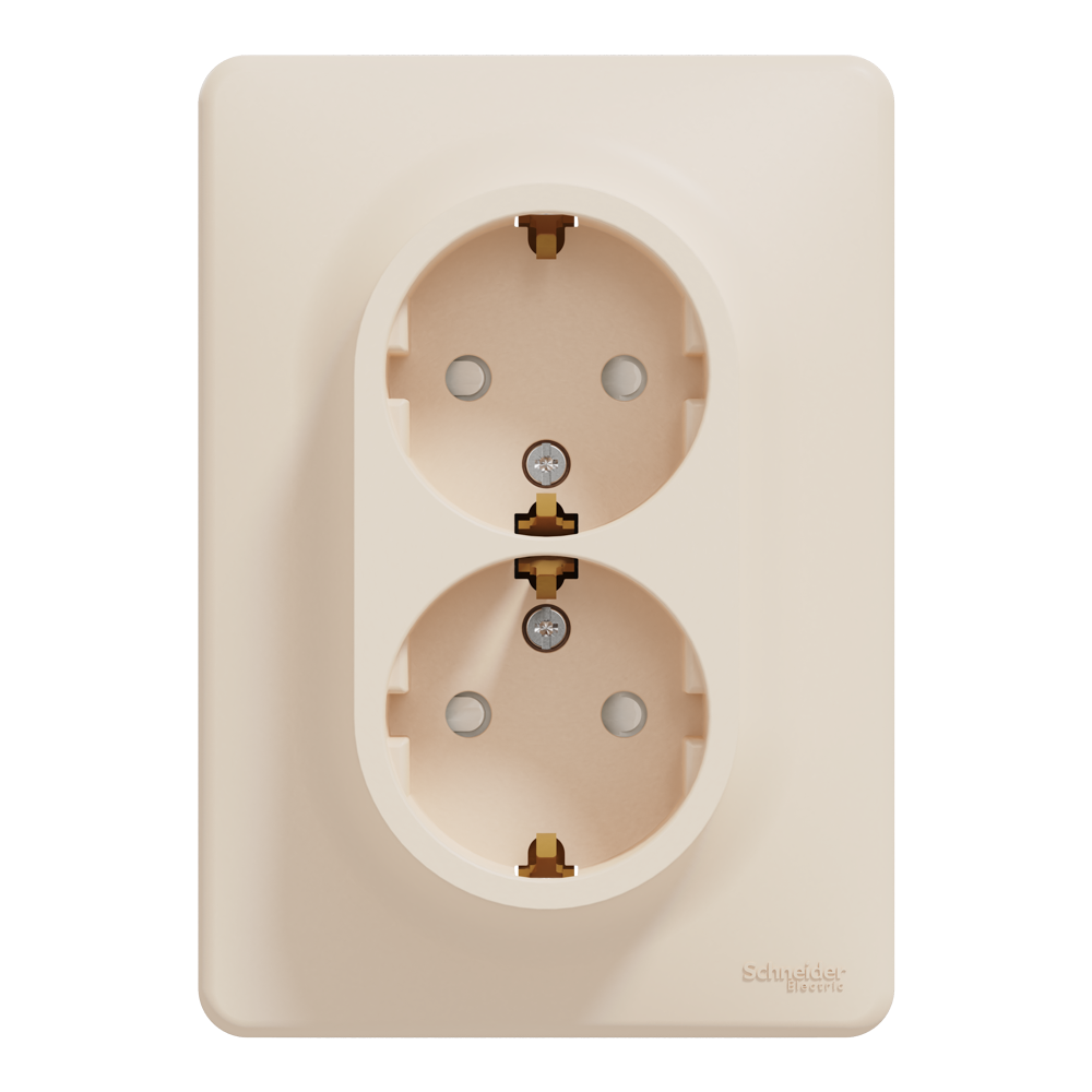 Розетка, Sedna Design&Elements, Подвійна розетка з заземленням та зі шторками Бежевий Sedna Design, бежевий (ral 1013), Schneider Electric, [SDD312221]