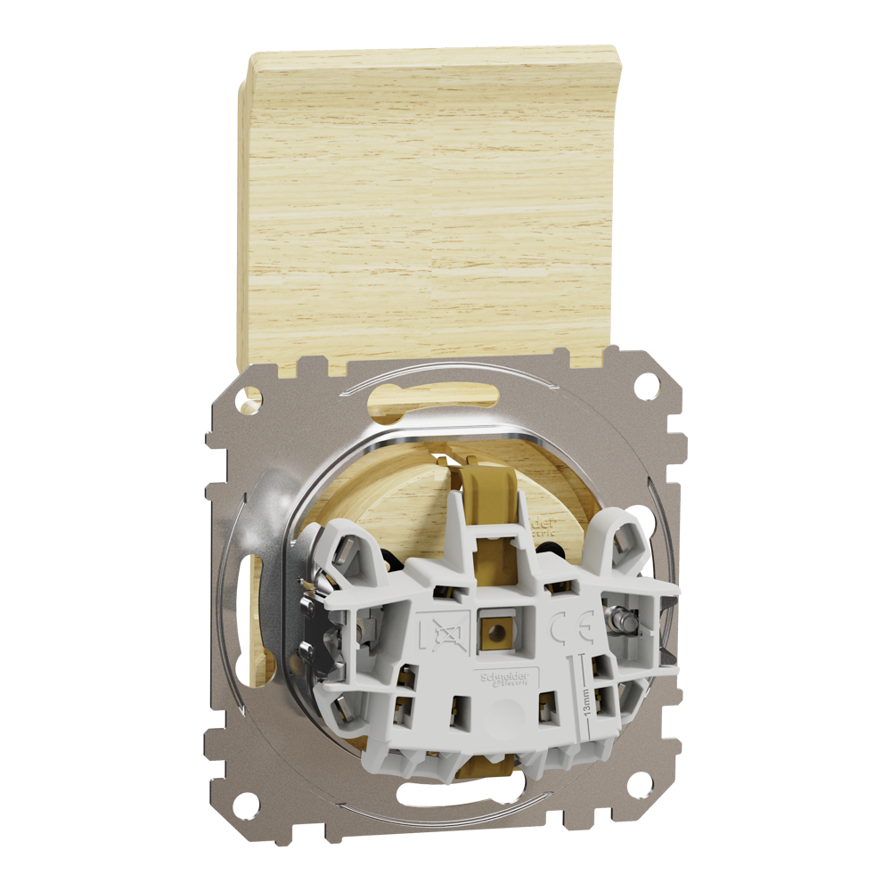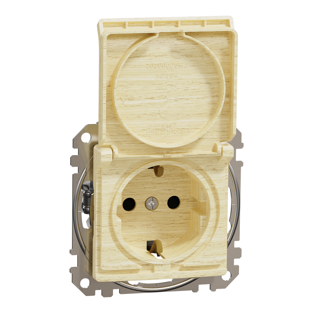 Розетка, Sedna Design&Elements, з заземленням та зі шторками, колір березового дерева, Schneider Electric, [SDD180024]