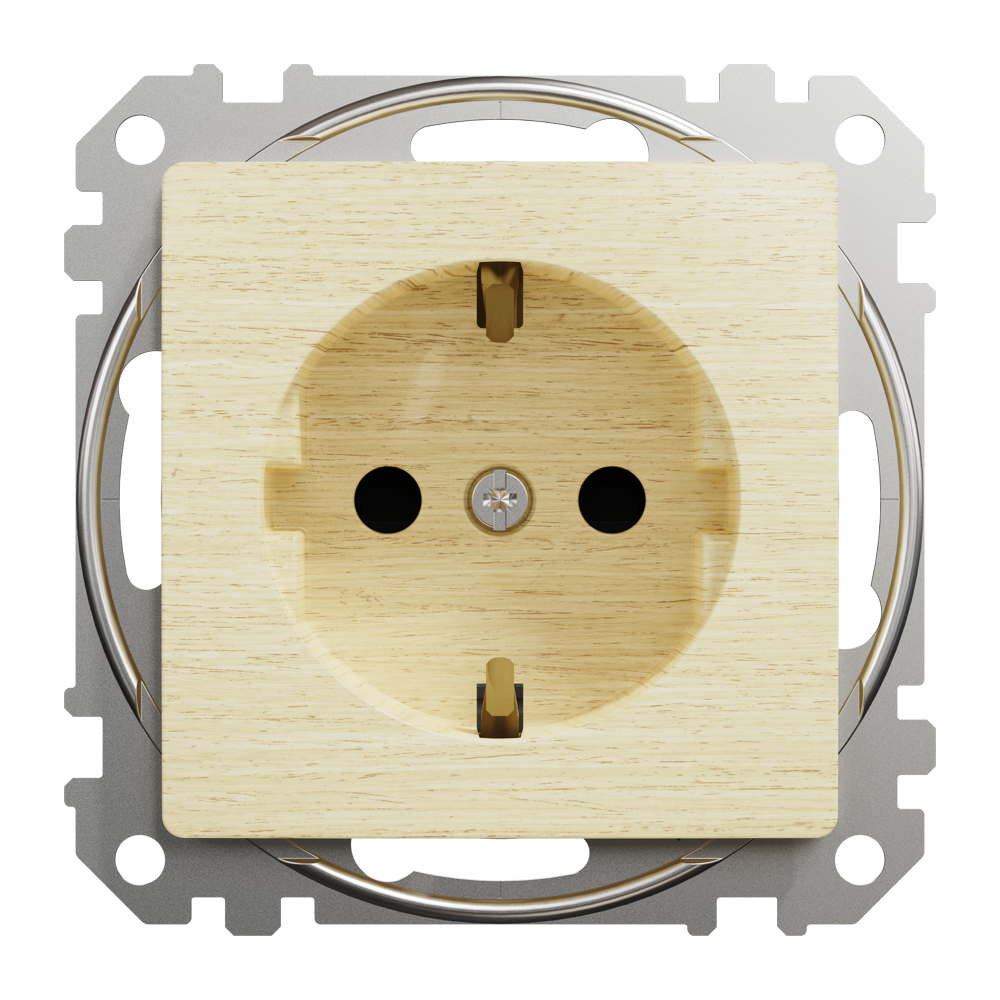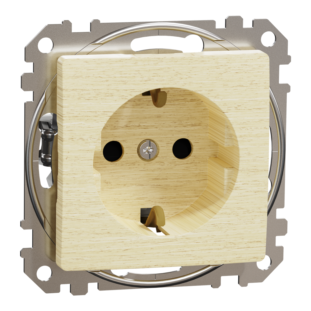 Розетка, Sedna Design&Elements, з заземленням та зі шторкою Береза Sedna Elements, колір березового дерева, Schneider Electric, [SDD180022]