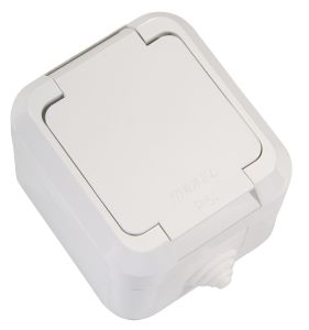 Розетка з кришкою вологозахищена Nemliyer – це біла розетка для накладного монтажу. Вона призначена для електричних мереж із номінальним струмом 16А.