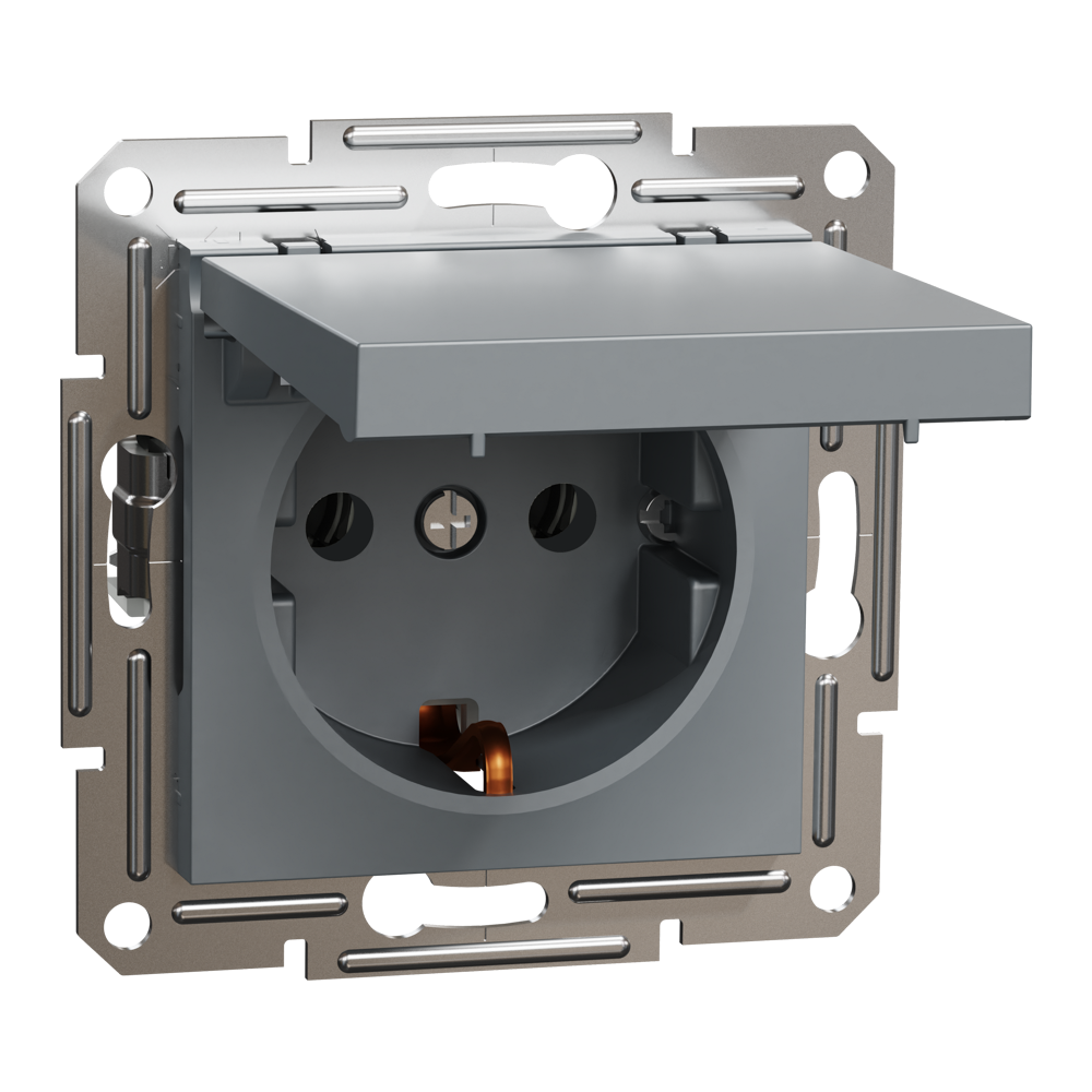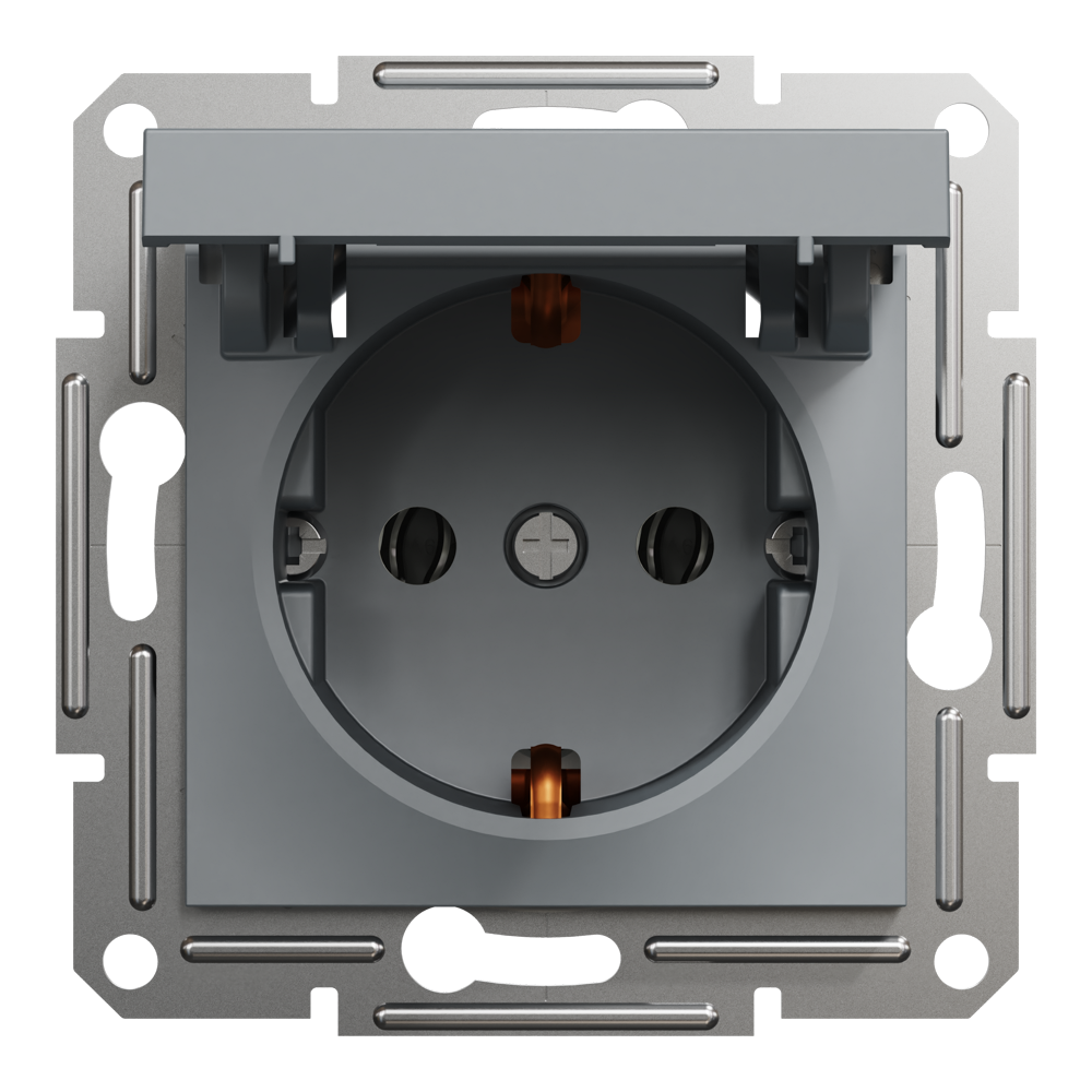 Розетка з кришкою, з заземленням Asfora сталь, Schneider Electric [EPH3100162]