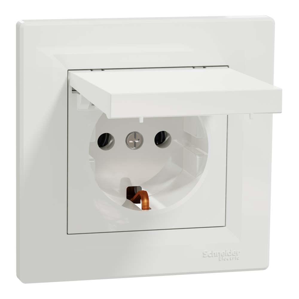 Розетка з кришкою, з заземленням біла Asfora, Schneider Electric [EPH3100121]
