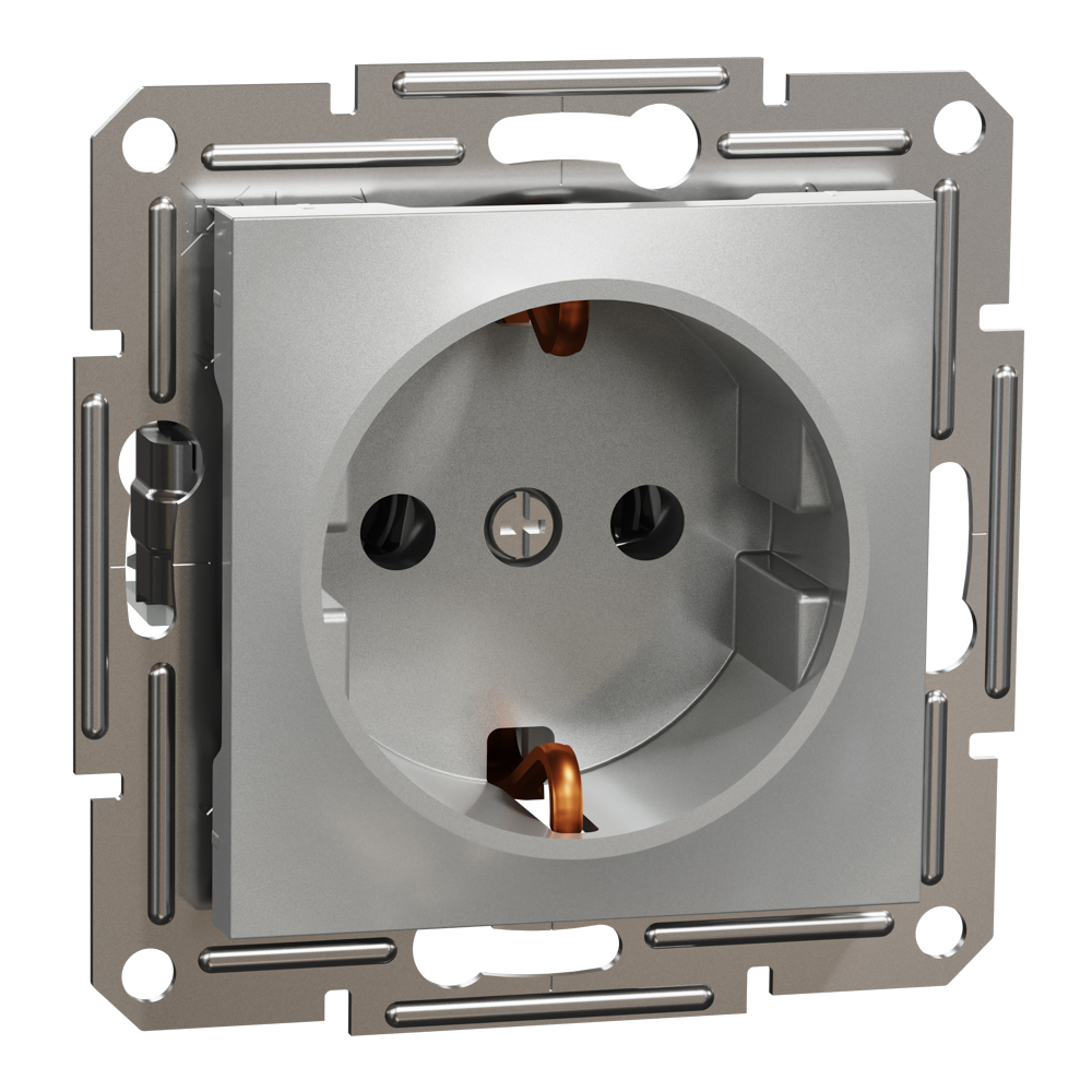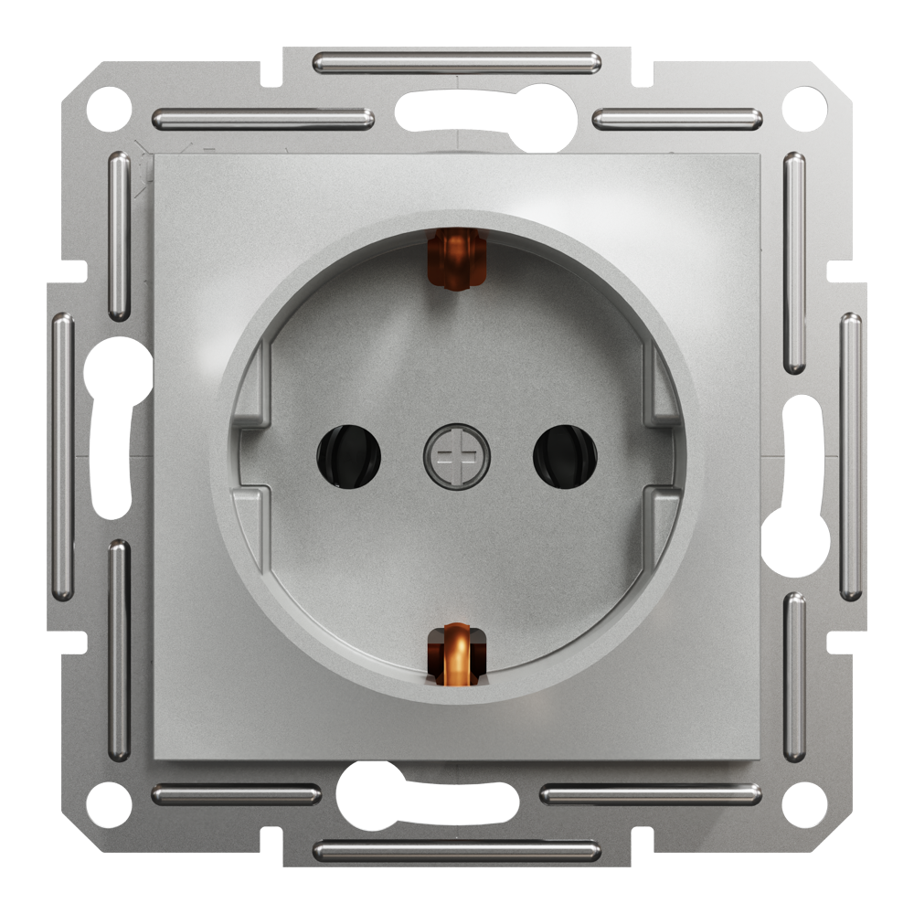Розетка з заземленням Asfora алюміній, Schneider Electric [EPH2900161]