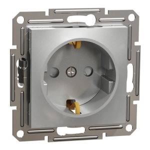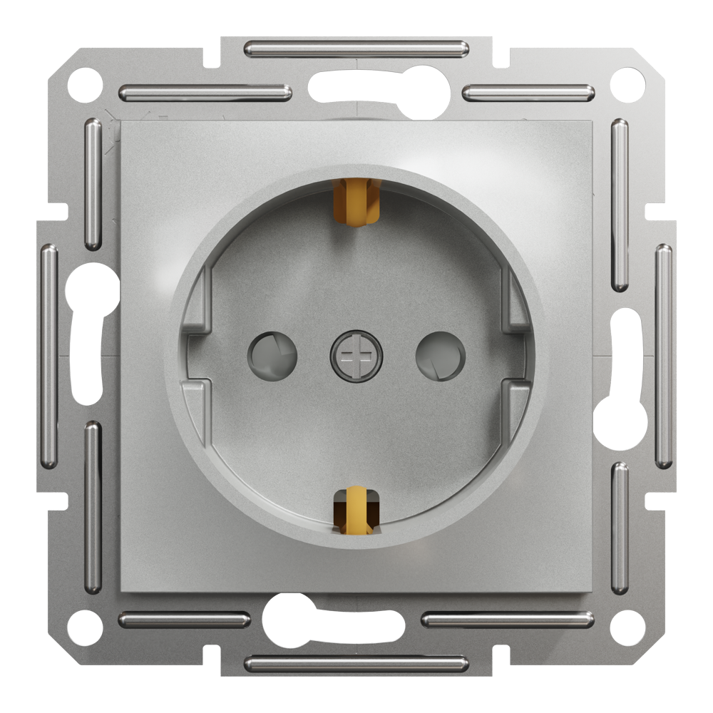 Розетка з заземленням, з захисними шторками Asfora алюміній, Schneider Electric [EPH2900261]